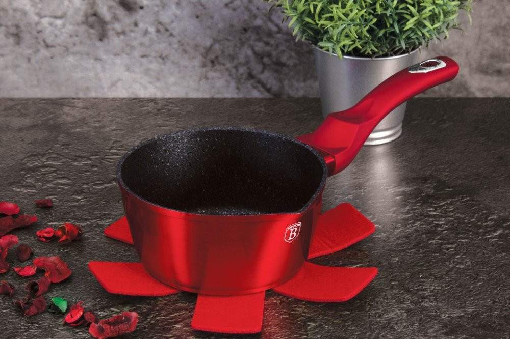 - materiál: kovaný hliník s mramorovým povrchom- farba: vínovo červená, metalická- priemer: 16 x 7,5 cm- 3-vrstvový nepriľnavý povrch s mramorovým vzorom- ergonomické mäkké rukoväte- možno umývať v umývačke riadu - jednoduché čistenie!- úspora energie až 35 %- elegantný dizajn- vonkajšia metalická farba- ŠETRNÝ K ŽIVOTNÉMU PROSTREDIU- BEZ PFOA, olova a kadmiaChladnička do každej kuchyneRendlíky sú nevyhnutnou súčasťou každej domácnosti! Používajte ju na prípravu rôznych pokrmov, od polievok a omáčok až po mäsové a zeleninové jedlá. Sú veľmi obľúbené aj na ohrievanie mlieka. Nielenže umožňuje presné dávkovanie a kontrolu teploty mlieka, ale jeho kvalitný povrch zabezpečuje rýchle a rovnomerné zohriatie celého obsahu.Môžete s nimi variť na rôznych typoch sporákov ( indukčných, elektrických, plynových a sklokeramických) alebo dokonca v rúre. Náš sortiment hrncov je vyrobený z týchto materiálov - nehrdzavejúca oceľ, hliník a meď a môžete si ich kúpiť v rôznych veľkostiach. Vďaka nepriľnavému povrchu pripravíte jedlo s minimom tuku. Následné čistenie bude veľmi jednoduché. Žiadna kuchyňa by nebola kompletná bez panvice!Je pre vás pri výbere riadu dôležitá farba? Pri výbere panvice to určite nebude inak. Tento parameter je pri výbere kuchynského riadu neopomenuteľný, a preto si v našom e-shope môžete vybrať zo širokej škály farieb. Bude sa do vašej kuchyne hodiť panvica s červenou farbou?Môžete ju pokojne umývať v umývačke riadu! Tento riad je veľmi praktický a ušetrí vám čas v kuchyni. Nepriľnavý povrch zaručuje jednoduché čistenie a minimalizuje riziko pripálenia jedla! Ani pri ručnom umývaní panvice sa teda vôbec neunavíte!Spoločnosť BerlingerHaus je výrobcom vysokokvalitného riadu pre domácnosť, ktorý je veľmi obľúbený medzi zákazníkmi po celom svete. Hlavnými výhodami používania domácich potrieb sú jednoduchosť a pohodlie pri príprave jedla a vynikajúca kvalita použitých materiálov.Zo širokej ponuky výrobkov tohto výrobcu sú veľmi obľúbené panvice, ktoré sú vyrobené z najlepších materiálov a majú množstvo výhod. Panvice BerlingerHaus sú veľmi odolné a majú dlhú životnosť, takže vydržia dlhé roky a sú skvelou investíciou do vašej kuchyne. Vďaka výbornému rozloženiu tepla pripravíte chutné jedlá s minimom tuku.