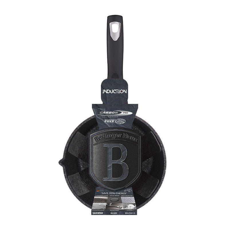 - panvica s mramorovým povrchom a ergonomickou rukoväťou v atraktívnom dizajne- 3-vrstvový povrch s mramorovým dizajnom, ktorý sa vyznačuje dokonalými nepriľnavými vlastnosťami, pripravované jedlo sa nepripaľuje a vďaka tomu sa panvica veľmi ľahko čistí- je vhodná aj na zdravé varenie s minimálnym množstvom tuku alebo oleja, dokonca bez jedinej kvapky tuku, v závislosti od použitých surovín- vnútorná a vonkajšia vrstva neobsahuje žiadne škodlivé látky, takže výsledné jedlo počas varenia nestráca vitamíny- kované hliníkové jadro panvice je vysoko stabilné a má dokonalú tepelnú vodivosť, takže sa nielen rýchlo a rovnomerne zahrieva po celom povrchu, ale aj veľmi ľahko udržiava teplotu počas varenia- zosilnené indukčné dno Turbo z nehrdzavejúcej ocele pre maximálnu účinnosť varenia- ergonomicky tvarovaná rukoväť má protišmykovú úpravu soft-touch, vďaka ktorej skvele padne do ruky, ľahko sa s ňou manipuluje a umožňuje pevné a bezpečné uchopenie- vďaka izolačným prvkom zostáva rukoväť počas celého procesu varenia chladná a nepripaľuje sa- telo hrnca je zakončené zosilneným okrajom pre lepšiu odolnosť voči nárazom- vhodný pre všetky typy sporákov a indukciu- vďaka vynikajúcim nepriľnavým vlastnostiam je čistenie rýchle a jednoduché, stačí umyť teplou vodou a hubkou- možno umývať aj v umývačke riadu- ideálny na každodenné varenie a ohrievanie všetkých druhov potravín, najmä omáčok- Šetrný k životnému prostrediu, použité materiály neobsahujú žiadne škodliviny, ako je Pfoa, olovo alebo kadmium- hrniec je vďaka svojmu dokonalému vzhľadu vhodný aj na servírovanie jedla priamo na stôl- rozmery: priemer hornej časti 16 x výška 7,5 cm- objem: 1,2 l- kolekcia: Carbon PRO Line Výlevka pre každú kuchyňuRendlíky sú základom každej domácnosti! Môžete ju použiť na prípravu rôznych pokrmov, od polievok a omáčok až po jedlá s mäsom a zeleninou. Veľmi obľúbené sú aj na ohrievanie mlieka. Nielenže umožňuje presné dávkovanie a kontrolu teploty mlieka, ale jeho kvalitný povrch zabezpečuje rýchle a rovnomerné zohriatie celého obsahu.Môžete s nimi variť na rôznych typoch sporákov ( indukčných, elektrických, plynových a sklokeramických) alebo dokonca v rúre. Náš sortiment hrncov je vyrobený z týchto materiálov - nehrdzavejúca oceľ, hliník a meď a môžete si ich kúpiť v rôznych veľkostiach. Vďaka nepriľnavému povrchu pripravíte jedlo s minimom tuku. Následné čistenie bude veľmi jednoduché. Žiadna kuchyňa by nebola kompletná bez panvice!Je pre vás pri výbere riadu dôležitá farba? Pri výbere panvice to určite nebude inak . Tento parameter je pri výbere kuchynského riadu neopomenuteľný, a preto si v našom e-shope môžete vybrať zo širokej škály farieb. Bude sa do vašej kuchyne hodiť panvica čiernej farby?Spoločnosť BerlingerHaus je výrobcom kvalitného riadu do domácnosti, ktorý je veľmi obľúbený medzi zákazníkmi po celom svete. Medzi hlavné výhody používania domácich potrieb patrí jednoduchosť a pohodlie pri príprave jedál a vynikajúca kvalita použitých materiálov.Zo širokej ponuky výrobkov tohto výrobcu sú veľmi obľúbené panvice, ktoré sú vyrobené z najlepších materiálov a majú množstvo výhod. Panvice BerlingerHaus sú veľmi odolné a majú dlhú životnosť, takže vydržia dlhé roky a sú skvelou investíciou do vašej kuchyne. Vďaka výbornému rozloženiu tepla pripravíte chutné jedlá s minimom tuku.