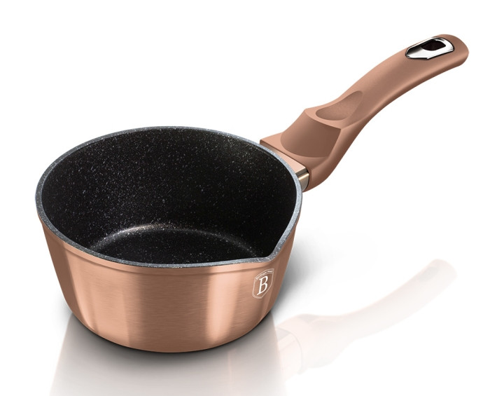 - materiál: kovaný hliník s mramorovým povrchom- farba: ružové zlato, metalická- priemer: 16 x 7,5 cm- bEZPLATNÁ ochrana povrchu- 3-vrstvový nepriľnavý povrch s mramorovým vzorom- ergonomické mäkké rukoväte- možno umývať v umývačke riadu - jednoduché čistenie!- úspora energie až 35 %- elegantný dizajn- vonkajšia metalická farba- ŠETRNÝ K ŽIVOTNÉMU PROSTREDIU- BEZ PFOA, olova a kadmiaChladnička do každej kuchyneRendlíky sú nevyhnutnou súčasťou každej domácnosti! Používajte ju na prípravu rôznych pokrmov, od polievok a omáčok až po mäsové a zeleninové jedlá. Sú veľmi obľúbené aj na ohrievanie mlieka. Nielenže umožňuje presné dávkovanie a kontrolu teploty mlieka, ale jeho kvalitný povrch zabezpečuje rýchle a rovnomerné zohriatie celého obsahu.Môžete s nimi variť na rôznych typoch sporákov ( indukčných, elektrických, plynových a sklokeramických) alebo dokonca v rúre. Náš sortiment hrncov je vyrobený z týchto materiálov - nehrdzavejúca oceľ, hliník a meď a môžete si ich kúpiť v rôznych veľkostiach. Vďaka nepriľnavému povrchu pripravíte jedlo s minimom tuku. Následné čistenie bude veľmi jednoduché. Žiadna kuchyňa by nebola kompletná bez panvice!Je pre vás pri výbere riadu dôležitá farba? Pri výbere panvice to určite nebude inak. Tento parameter je pri výbere kuchynského riadu neopomenuteľný, a preto si v našom e-shope môžete vybrať zo širokej škály farieb. Bude sa do vašej kuchyne hodiť panvica so zlatou farbou?Panvicu môžete pokojne umývať v umývačke riadu! Tento riad je veľmi praktický a šetrí váš čas v kuchyni. Nepriľnavý povrch zaručuje jednoduché čistenie a minimalizuje riziko pripálenia jedla! Ani pri ručnom umývaní panvice sa teda vôbec neunavíte!Spoločnosť BerlingerHaus je výrobcom vysokokvalitného riadu pre domácnosť, ktorý je veľmi obľúbený medzi zákazníkmi po celom svete. Hlavnými výhodami používania domácich potrieb sú jednoduchosť a pohodlie pri príprave jedla a vynikajúca kvalita použitých materiálov.Zo širokej ponuky výrobkov tohto výrobcu sú veľmi obľúbené panvice, ktoré sú vyrobené z najlepších materiálov a majú množstvo výhod. Panvice BerlingerHaus sú veľmi odolné a majú dlhú životnosť, takže vydržia dlhé roky a sú skvelou investíciou do vašej kuchyne. Vďaka výbornému rozloženiu tepla pripravíte chutné jedlá s minimom tuku.