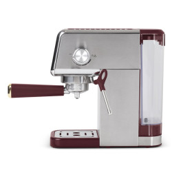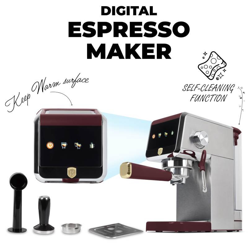 Tento digitálny kávovar na espresso v elegantnej bordovej farbe je ideálnou voľbou pre každého milovníka kvalitnej kávy. Vďaka profesionálnym funkciám, vysokotlakovému čerpadlu a dotykovému ovládaniu ponúka skvelý užívateľský zážitok aj perfektné výsledky prípravy espressa alebo cappuccina v pohodlí domova. Špecifikácia: Materiál: Nerezová oceľ Výkon: 1350 W Napätie: 220–240 V, 50–60 Hz Objem nádrže na vodu: 1,2 l Filtre: Na 1 a 2 šálky Príslušenstvo: Plastová lyžička 2 v 1 s pečiatkou, vysoko kvalitný razník z nerezovej ocele 18/10 Farba: Nerezová oceľ – bordó Vlastnosti: Digitálny LED displej s dotykovou obrazovkou – intuitívne a moderné ovládanie Vysokotlakový systém 20 barov – na prípravu kávy s maximálnou chuťou Systém rýchleho ohrevu – na okamžitú prípravu nápojov Profesionálny napeňovač mlieka – pre jemnú a krémovú penu Predhrievač šálok z nerezovej ocele – ideálna teplota servírovania Funkcia automatického čistenia a odvápňovania – jednoduchá údržba a dlhšia životnosť Tento kávovar predstavuje perfektnú kombináciu elegantného dizajnu a profesionálnych funkcií – ideálny doplnok pre štýlovú kuchyňu aj dokonalú kávovú chvíľu.