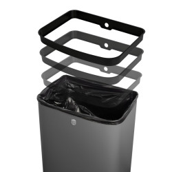 ?Typ: bezdotykový senzorový odpadkový kôš? Objem: 60 l? Materiál: oceľ? Rozmery: 65 × 38,5 × 28,5 cm? Napájanie: 4× batérie AA (nie sú súčasťou dodávky)? Ovládanie: senzor + tlačidlo? Konštrukcia: uzamykateľný rám z nehrdzavejúcej ocele na pripevnenie tašky? Povrch: matný zvonka aj zvnútra? Farba: tmavosivá / matná antracitová (kolekcia Anthracite)