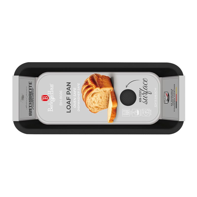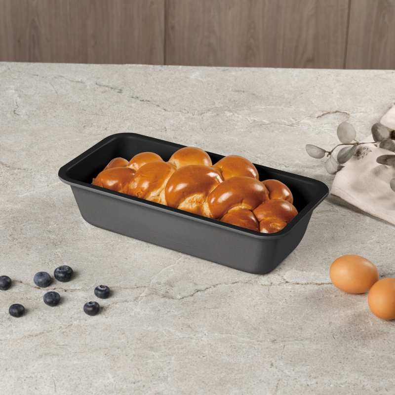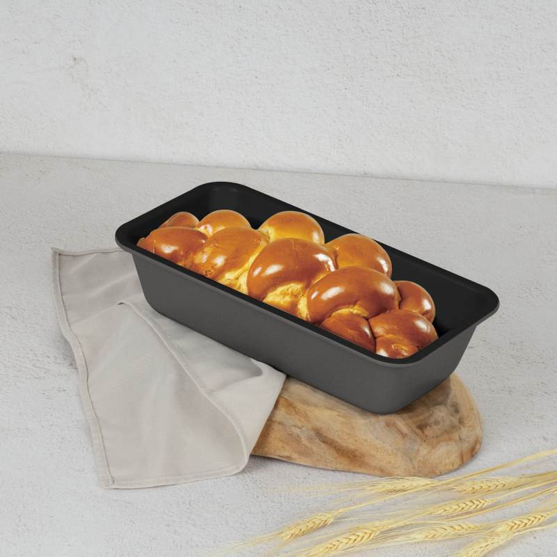 Forma na biskupský chlebíček – Antracit Collection Premeňte každý domáci múčnik na majstrovské dielo! Táto forma v elegantnom matnom antracitovom prevedení spája špičkový design s maximálnou funkčnosťou. Vďaka odolnému nepriľnavému povrchu TitanPro sa cesto nikdy neprilepí - a každý výtvor sa vždy dokonale podarí. Technické parametre: • Materiál: uhlíková oceľ s nepriľnavým povrchom TitanPro • Rozmery: 32 × 13,5 × 6,5 cm • Farba: matná antracitová • 3× odolný nepriľnavý povrch TitanPro • Vyrobené z ťažkej ocele • Štýlový a elegantný dizajn s matnou vonkajšou farbou • Jednoduché čistenie • Ekologicky šetrné – bez PFOA, olova a kadmia Pečte s ľahkosťou a štýlom - a nechajte svoj chlebíček zažiariť!