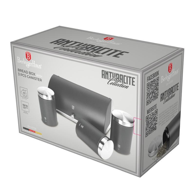 - Chlebník a súprava dóz na potraviny 4 ks Antracit Collection