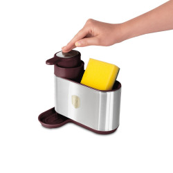 Funkcia 2 v 1: kombinuje dávkovač umývacieho prostriedku s praktickým držiakom na hubky, čím šetrí miesto na kuchynskej linke.