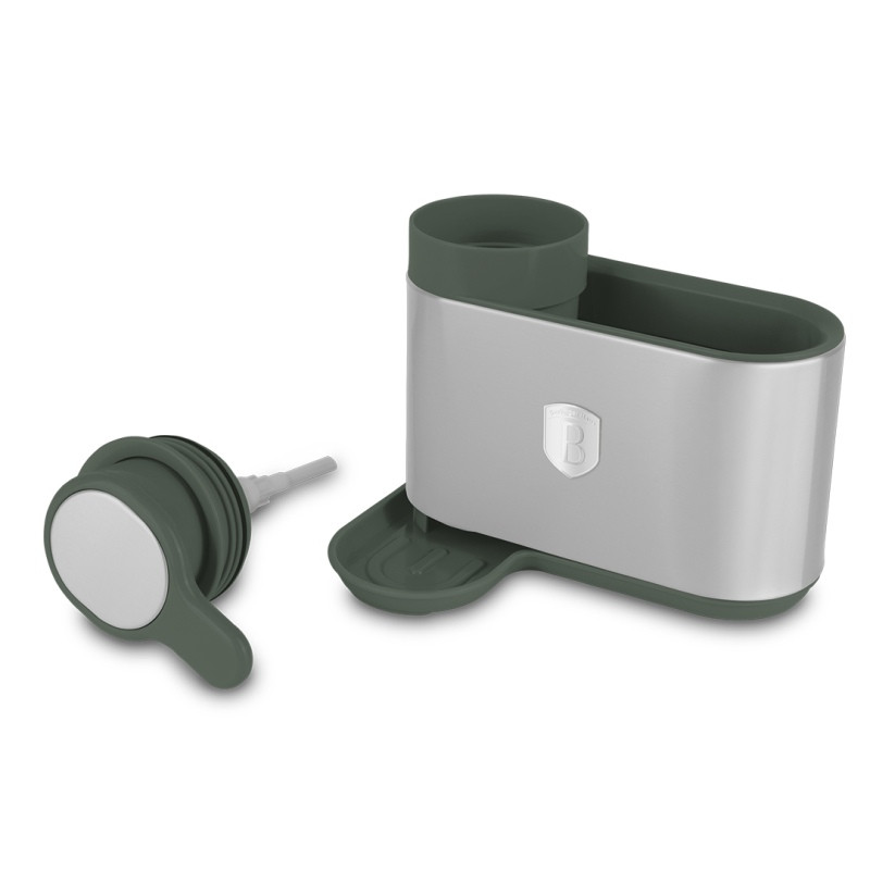 Dávkovač na poháre s držiakom na hubky 2v1 BerlingerHaus Matte Green Collection organizér do kuchynského drezu
