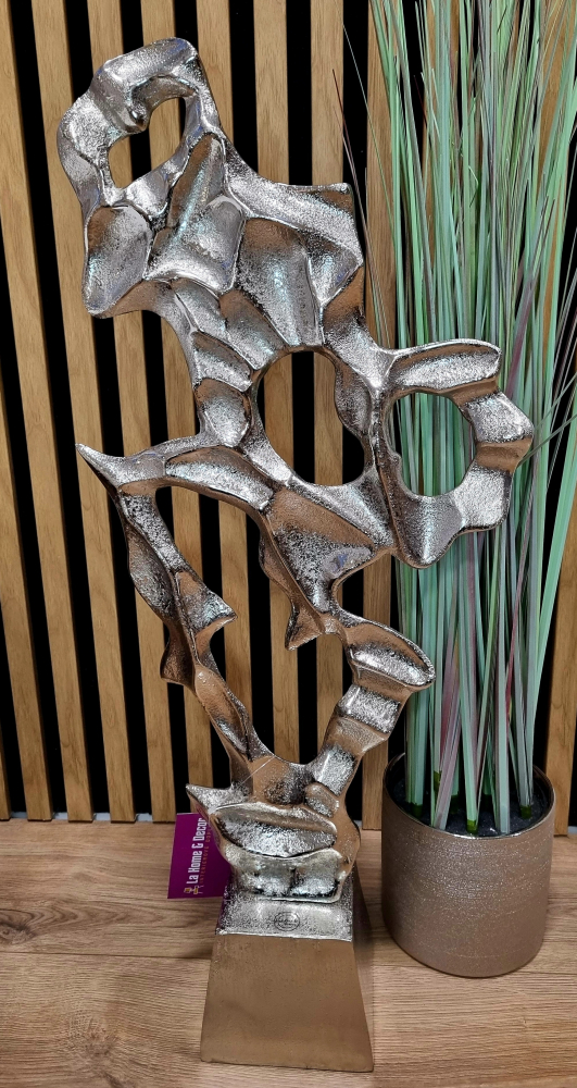 Táto nádherná abstraktná dekorácia dodá každej miestnosti nádych modernej elegancie. Je vyrobená z kovu s krásnou striebornou povrchovou úpravou. Vďaka starostlivo vybraným kolekciám, ktoré ulahodia každému vkusu, vám uľahčíme hľadanie dokonalých kúskov pre váš domov a štýl. Vaša spokojnosť je našou najvyššou prioritou.