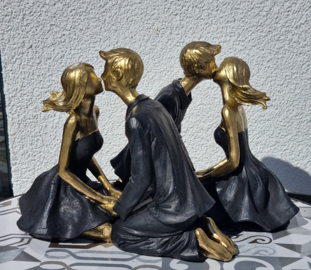 Elegantná figúrka zobrazujúca pár v okamihu bozku , zdôrazňujú emocionálny charakter dekorácie a dodávajú jej symbolický význam – blízkosť, harmóniu a trvalé puto. Je to nadčasová ozdoba, ktorá dodáva miestnosti eleganciu a teplý charakter.