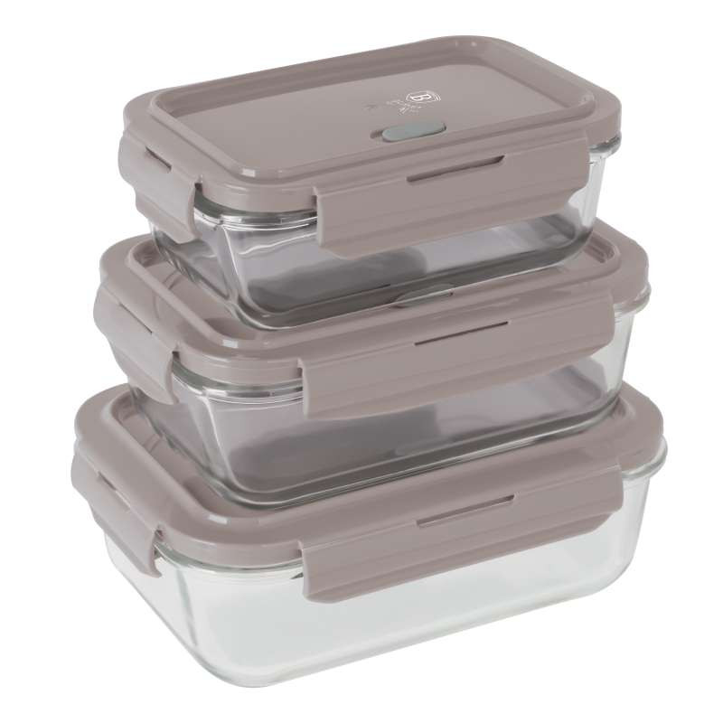 Dóza na potraviny so skleneným vekom sada 3 ks Taupe Collection