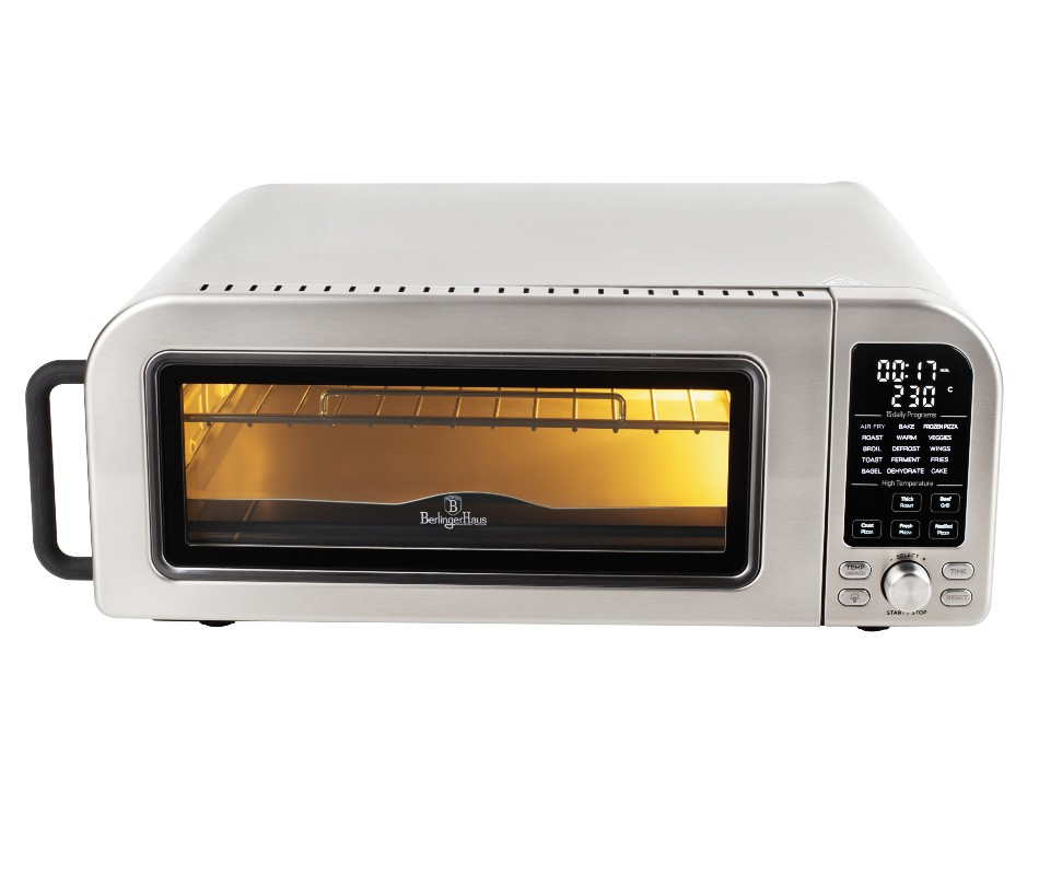Elektrická pec na pizzu z kolekcie BerlingerHaus Matte Black ponúka profesionálnu kvalitu a všestrannosť vo vašej kuchyni. Kľúčové vlastnosti - Výkon: 2000 W pre maximálnu efektivitu. - Kapacita: 18 litrov, ideálny na prípravu 12-palcových pizz. - Teplotný rozsah: 40-400 ° C, čo umožňuje presné nastavenie teploty pre rôzne druhy pokrmov. - Konvekčný ventilátor: Zaisťuje rovnomerné prúdenie vzduchu, vďaka čomu sú pokrmy chrumkavé zvonku a mäkké vo vnútri. - Digitálny displej: Jednoduché ovládanie s moderným vzhľadom. - Príslušenstvo: - Hliníková spodná doska na pečenie - Chrómový rošt na pečenie - Chrómová vzduchová doska na pečenie - Obojstranná liatinová doska - Kameninový tanier špeciálne pre pizzu - Nástroj na uchopenie roštu pre bezpečné používanie Prečo si ho zamilujete - Multifunkčné použitie: Môžete ho použiť nielen na pečenie pizze, ale aj na pečenie, grilovanie, opekanie a mnoho ďalšieho. - Vysoký teplotný rozsah: Umožňuje prípravu širokej škály pokrmov pri rôznych teplotách. - Moderný dizajn: Matná čierna farba dodá vašej kuchyni elegantný a moderný vzhľad. Charakteristiky a výhody - Konvekčný ventilátor: Zaisťuje rovnomerné pečenie a chrumkavé výsledky. - Digitálny displej: Umožňuje jednoduché a presné nastavenie teploty a času. - Široká škála príslušenstva: Umožňuje prípravu rôznych pokrmov s maximálnou pohodlnosťou.