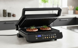 ? Pre domácnosti, ktoré hľadajú digitálny kontaktný gril s výkonom 2000 W a displejom? Pre používateľov, ktorí potrebujú elektrický gril 2v1 s otváraním pod uhlom 180°? Pre domácich milovníkov grilovania, ktorí pripravujú panini, sendviče, tortilly, steaky, hamburgery a zeleninu? Pre zákazníkov, ktorí chcú gril s odnímateľnými doskami na jednoduchú údržbu