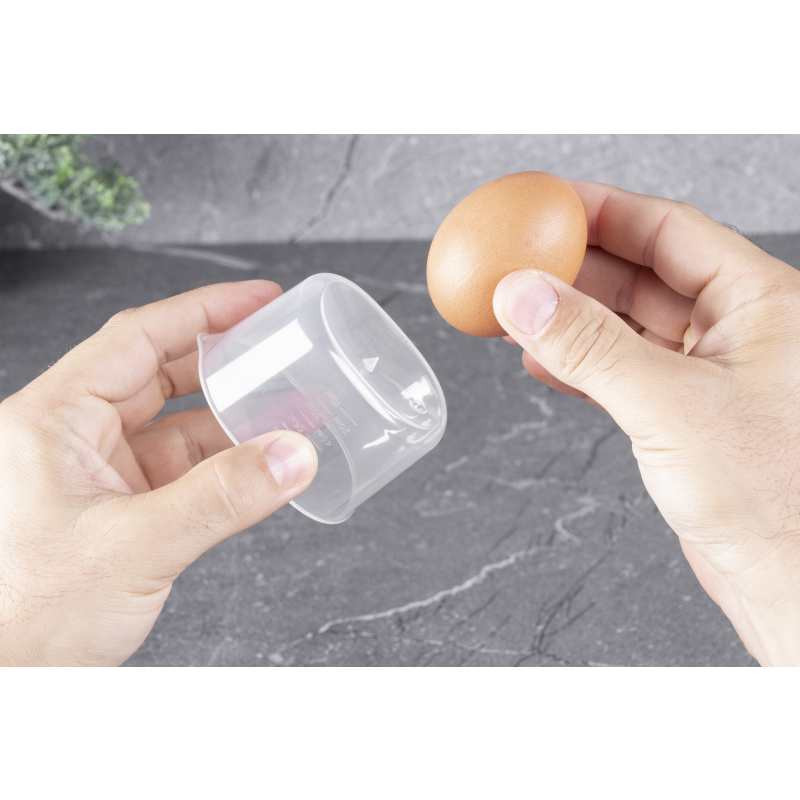 - Výkon: 400 W, 220-240 V, 50 Hz - Kapacita: maximálne 6 vajec - Príslušenstvo: - Vrecko na vajcia - 6 ks - Kryt na odpadky s rukoväťou - Odmerka s vpichovacou ihlou na dne - Miska na vajcia - Farba: čierno-ružovo zlatá - svetelný indikátor - Gombík s 3 stupňami tvrdosti: mäkký, stredný, tvrdý - Časovač - Akustický signál po ukončení varu - Funkcia automatického vypnutia - Dĺžka napájacieho kábla: 60 cm