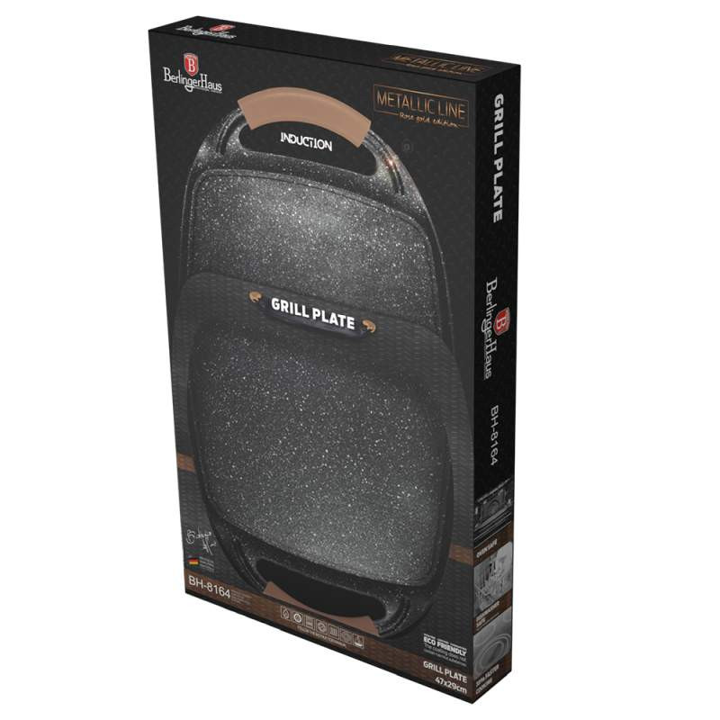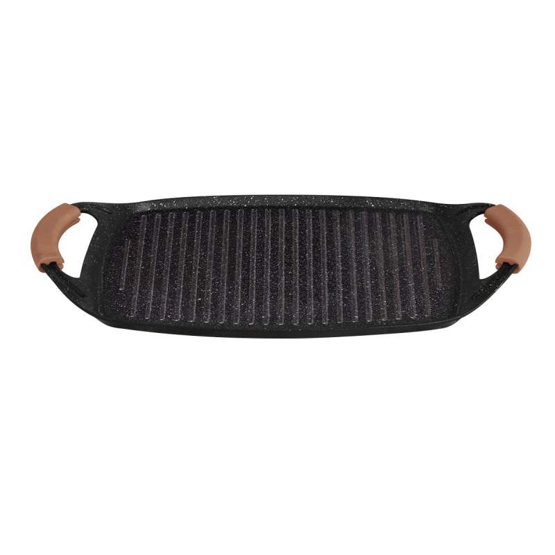 - rozmery: 47 x 29 cm materiál: tlakovo liaty hliník trojvrstvový nepriľnavý povrch s mramorovým dizajnom na varenie s minimom tuku farba: čierna / zlatá - TURBO indukčné dno odnímateľné silikónové rukoväte možno použiť v rúrach na pečenie teplotný rozsah: -20°C až +220°C - vhodné do umývačky riadu