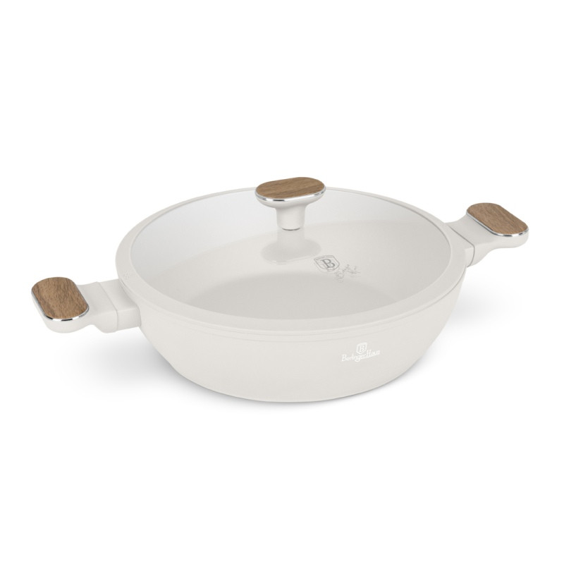 Objavte dokonalú kombináciu elegancie a funkčnosti s našou hlbokou panvicou s titánovým povrchom a pokrievkou 28 cm z kolekcie Sahara Nordic. Táto panvica je určená pre tých, ktorí hľadajú kvalitu a štýl v jednom. Je vyrobená z kovaného hliníka s revolučným nepriľnavým povrchom TitanPro, ktorý zaručuje jednoduché varenie a údržbu. Matná krémová farba s dizajnom dreva dodáva panvici moderný a zároveň prirodzený vzhľad, ktorý sa hodí do každej kuchyne. Registrovaný dizajn značky BerlingerHaus je zárukou originality a kvality.