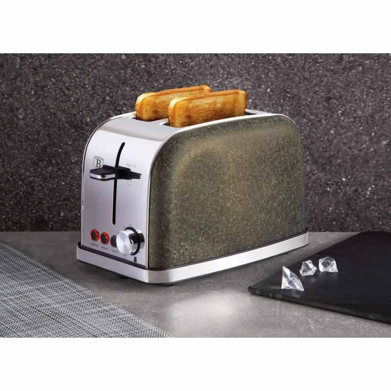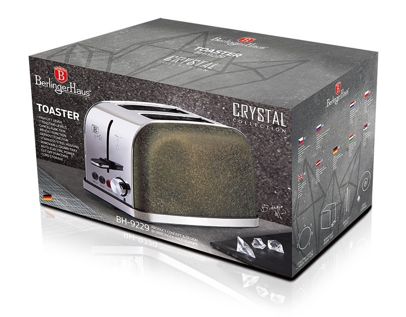 - materiál: nerezová oceľ - 7 stupňov nastavenia intenzity opečenia - automatické vysunutie pečiva - automatické centrovanie pre rovnomerný ohrev tenkých aj silných toastov - protišmyková úprava spodnej základne - funkcie: - DEFROST / rozmrazovanie, rozpekanie mrazeného pečiva - REHEAT / opakovaný ohrev a dohrievanie - CANCEL / okamžité prerušenie prevádzky pred koncom nastaveného času - funkcia HIGH LIFT pre ľahké vybratie malých kúskov pečiva - vyberateľná spodná časť na odstránenie omrviniek a vďaka tomu ľahké čistenie - príkon: 850 W - kolekcia Crystal Collection