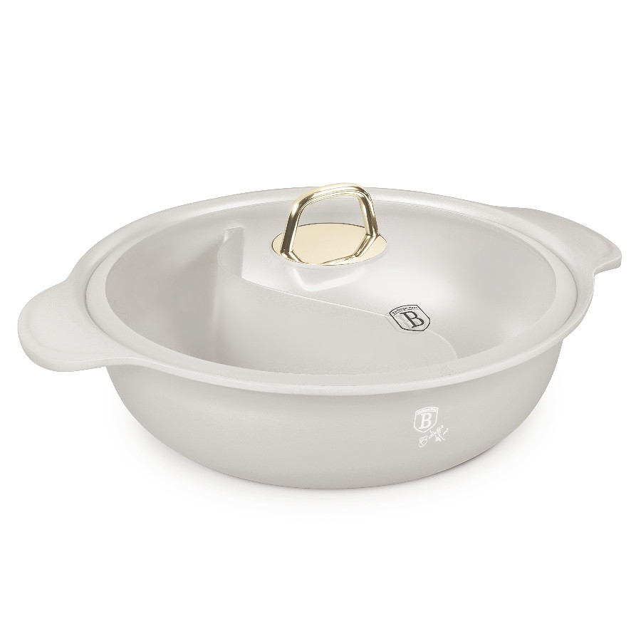 Dvojkomorový hrniec Berlinger Haus BH8628 Sahara – Pre skutočných znalcov kvality a inovácií! Tento hrniec je vyrobený z prémiového liateho hliníka - materiálu, ktorý poskytuje výnimočnú pevnosť a odolnosť. Ľahký, ale pevný hliník zaisťuje rovnomerné rozloženie tepla a dlhodobé používanie, pričom zachováva chuť každého pokrmu. Či už varíte na rodinnú večeru alebo pripravujete gurmánsku špecialitu, tento vysoko kvalitný materiál vám umožní varenie ľahko a bez námahy! Rozmery: O30 x 10 cm (4,2 l) S priemerom 30 cm a objemom 4,2 litra je tento hrniec ideálny na prípravu objemných pokrmov alebo viacerých porcií súčasne. Veľká veľkosť je vhodná a funkčná do každej kuchyne a dáva vám slobodu vytvárať kulinárske majstrovské diela pre celú rodinu. Farba: Elegantná matná krémová Sofistikovaná matná krémová farba dodá vašej kuchyni sofistikovanosť a štýl a ľahko zapadne do akéhokoľvek interiéru. Hrniec je nielen praktický, ale aj estetický a premení každý zážitok z varenia na potešenie. Vhodné do rúry: Do 220°C S Berlinger Haus BH8628 Sahara máte úplnú flexibilitu varenia! Vhodné pre použitie v rúre do 220 ° C, je určené na varenie najrôznejších receptov a metód, vďaka čomu je nepostrádateľným pomocníkom každého kulinárskeho nadšenca. Obliečka: Trojitý odolný nepriľnavý povlak TitanPro Vďaka povrchovej úprave TitanPro ponúka panvicu spoľahlivú ochranu proti prilepeniu a ľahké čistenie. Trojitý povlak je extrémne odolný proti poškriabaniu a zachováva si svoje vlastnosti aj po viacnásobnom použití. S ním môžete variť s menším množstvom tuku a udržiavať pokrmy zdravé bez toho, aby ste sa museli báť, že sa prichytia a pripália. Oddeľovač: Inovatívny oddeľovač v tvare S na varenie dvoch jedál súčasne Inovatívna prepážka v tvare S v Berlinger Haus BH8628 Sahara umožňuje variť dve rôzne jedlá súčasne bez toho, aby sa miešali ich chute a vône. Ušetrite čas a námahu kombináciou rôznych receptov a zapôsobte na svojich blízkych rozmanitosťou na stole. Veko: Tvrdené sklo s tepelne odolným silikónovým systémom mäkkého zatvárania Pokrievka z tvrdeného skla vám dáva plnú kontrolu nad procesom varenia bez toho, aby ste ju museli otvárať. Silikónový systém poskytuje mäkký a bezpečný uzáver, ktorý zabraňuje rozliatiu a udržuje teplo, pričom zachováva chuť pokrmu. Rukoväť: Nerezová oceľ s luxusným zlatým PVD povlakom Rukoväte z nerezovej ocele so zlatým PVD povlakom dodávajú nádych sofistikovanosti a pritom sú odolné a praktické. Tieto rukoväte kombinujú estetiku a funkčnosť a premenia hrniec na elegantný doplnok každej kuchyne. Základ: Turbo indukcia pre rovnomerné a efektívne zahrievanie S turbo indukčnou základňou dosahuje hrniec rovnomerného a rýchleho ohrevu, čo šetrí energiu a zaručuje vynikajúcu prípravu každého pokrmu. Či už používate indukčný alebo iný typ varnej dosky, táto základňa poskytuje ideálnu tepelnú účinnosť pre všetky typy riadu. Vneste do svojej kuchyne luxus, štýl a kvalitu bez kompromisov s Berlinger Haus BH8628 Sahara! Tento hrniec je vhodný pre akúkoľvek kulinársku výzvu a je dokonalou voľbou pre skutočných znalcov pohodlia a sofistikovanosti.