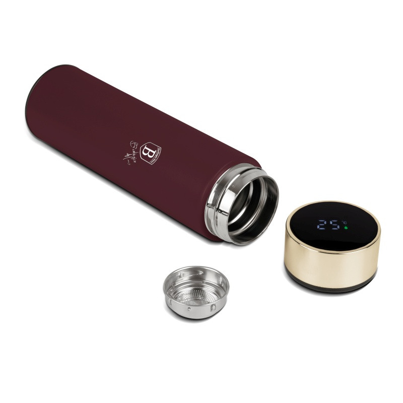 Táto štýlová fľaša na pitie s moderným LED displejom je ideálnym spoločníkom pre každodennú hydratáciu doma, v práci aj na cestách. Vďaka šikovnému digitálnemu teplomeru vždy viete, aký teplý alebo studený je váš nápoj. Elegantná matná bordová farba a kvalitná nerezová oceľ z nej robia nielen praktický, ale aj dizajnový doplnok. Špecifikácia: Materiál: Vnútorné telo z nerezovej ocele 18/10 s matným práškovým lakovaním Objem: 0,5 l Farba: Matná bordová Filter: Čistiaci filter z nerezovej ocele 18/10 Batéria: Súčasťou balenia (nevymeniteľná) Vlastnosti: Vstavaný digitálny teplomer – LED displej na viečku zobrazuje aktuálnu teplotu nápoja Dvojitá stena – skvelá termoizolácia Udržuje nápoje teplé až 8 hodín a studené až 12 hodín Jednoduché čistenie – hygienické a praktické použitie Pohodlné ovládanie a prenášanie Štýlový a moderný dizajn – ideálny na každodenné použitie aj ako darček Dokonalá rovnováha medzi funkčnosťou a eleganciou - váš nápoj v ideálnej teplote vždy po ruke.