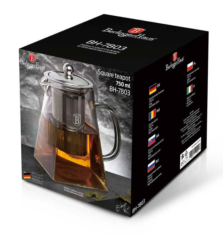 - materiál: žiaruvzdorné borosilikátové sklo - prvotriedna kvalita spracovania - veko z nerezovej ocele - kanvica je ideálna na prípravu sypaného, bylinkového či ovocného čaju - sitko z nerezovej ocele je plne odnímateľné, čo uľahčuje čistenie - dostatočne široké hrdlo umožňuje kanvicu bez problému naplniť kockami ľadu, väčšími kúskami ovocia, atď. - objem: 0,75 litra