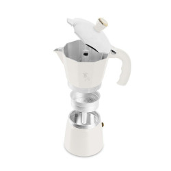 Kanvica na espresso typu moka je prístroj na domáce varenie kávy za použitia vysokého tlaku vodnej pary. Pôvod má v Taliansku, prvá vznikla už v roku 1933. Jedná sa o, dnes už po celom svete, veľmi obľúbený spôsob prípravy kávy. Tradičným materiálom na výrobu vždy bol a je hliník, pretože výborne vedie teplo, zohnať sa dajú aj nerezové. Obsluhovať moka kanvičku je veľmi jednoduché a rýchle, každý sa to bez problémov naučí počas prvého varenia. Do spodnej nádobky sa naleje voda. Lievik (umiestnený uprostred), ktorého dno je vybavené jemným sitkom, sa naplní stredne mletou kávou. Naskrutkuje sa horná nádoba kanvice, ktorá je na jej spodnej strane tiež opatrená sitkom, ale ešte jemnejším. Varí sa na miernom ohni. Po pár minútach sa v spodnej nádobe začne vytvárať para, ktorá vytlačí vriacu vodu cez lievik s mletou kávou do hornej časti kanvice, kde sa nám už hromadí hotová káva. Tú potom môžeme rovno servírovať do šálky. Jej chuť bude intenzívna, výrazná, s nezabudnuteľnou arómou. - Tradičná moka kanvička vyrobená z potravinárskeho hliníka vhodná na prípravu 3 šálok kávy - klasická príprava espressa originálnou talianskou metódou vysokého tlaku vodnej pary - veľmi rýchla a jednoduchá obsluha plastová rukoväť má nespornú výhodu, že pri použití nepáli - vhodná na plynový, elektrický sporák aj sklokeramickú dosku - ideálne využitie aj na cestách, napr. na plynovom variči - použité materiály sú zdravotne nezávadné a neobsahujú škodlivé látky - obľúbený dizajnový a tiež funkčný doplnok do kuchyne - materiál hliník - objem: 3 šálky 150 ml - farba matná krémová