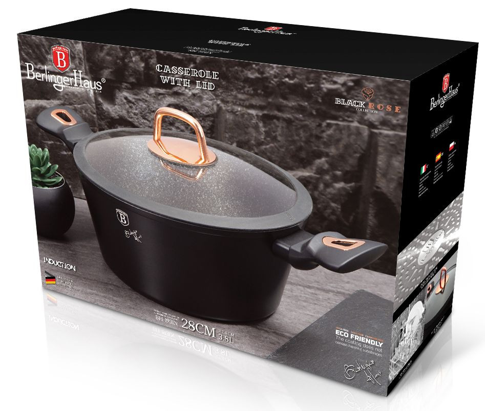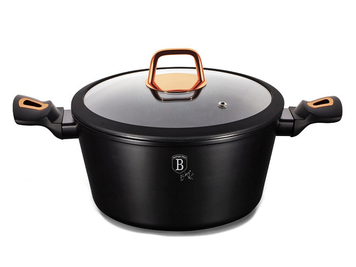 - materiál: kovaný hliník s mramorovým povrchom - priemer: 28 cm - výška: 12,5 cm - objem: 6,1 l - farba: čierna/rosegold - žiaruvzdorná pokrievka so silikónovým okrajom - 3-vrstvový nepriľnavý povrch s mramorovým dizajnom - ergonomické mäkčené rukoväte - TURBO indukčné dno - vhodné na všetky druhy ohrevu aj na indukciu - vhodné do umývačky riadu - jednoduché čistenie! - úspora energie až 35% - elegantný dizajn - ECO FRIENDLY - neobsahuje PFOA, Olovo ani Kadmium