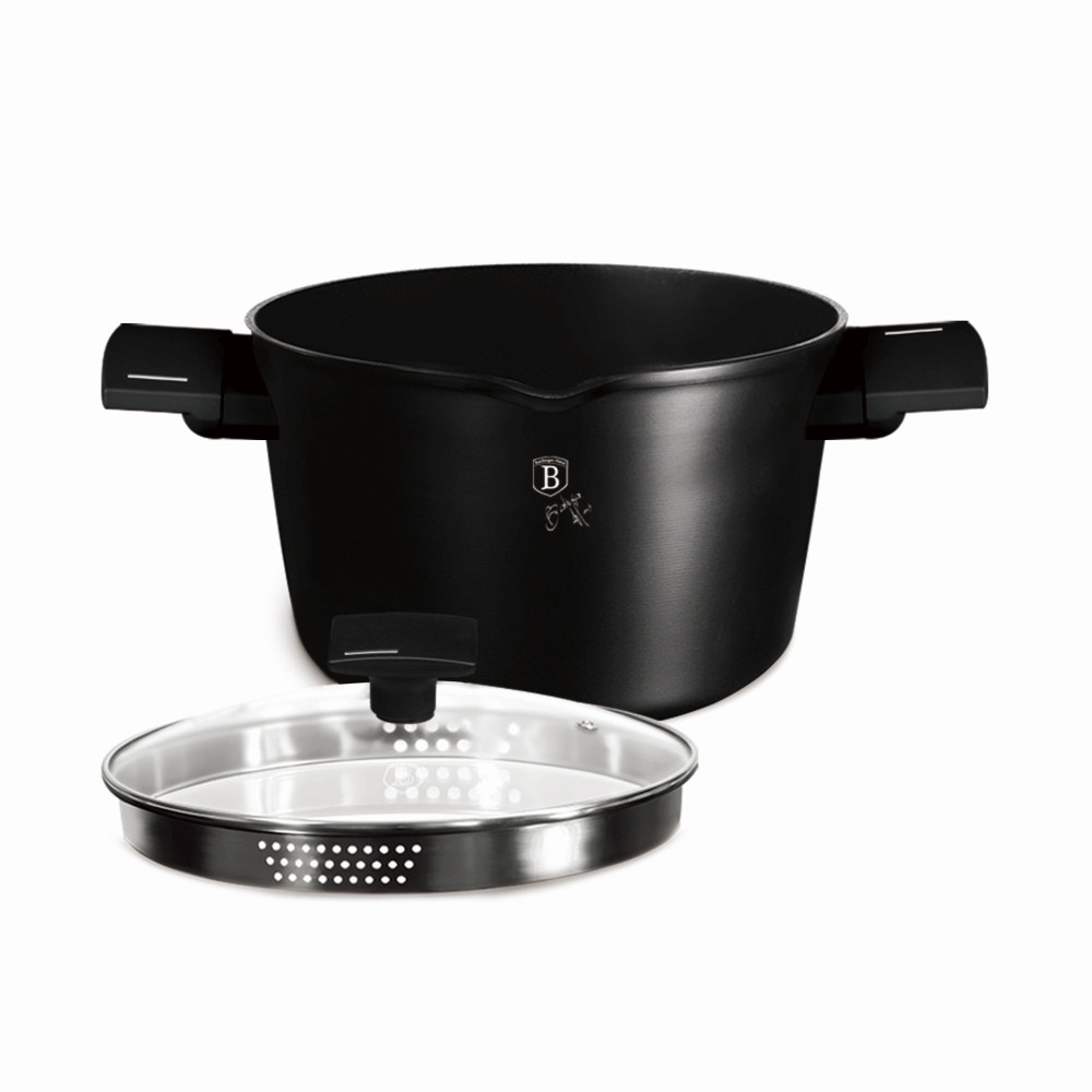 Objavte kúzlo varenia s hrncom na cestoviny a ryžu z kolekcie Matte BlackPredstavujeme vám hrniec na cestoviny a ryžu s priemerom 24 cm a pokrievkou z exkluzívnej kolekcie Matte Black, ktorý sa stane nepostrádateľným nástrojom vo vašej kuchyni. Tento hrniec je vyrobený z kvalitného kovaného hliníka s nepriľnavým povrchom TitaniumPro a ponúka špičkovú kvalitu a dizajn od renomovaného výrobcu Berlinger Haus. Jeho čierno-strieborný minimalistický vzhľad dodá vašej kuchyni moderný nádych, zatiaľ čo jeho funkčnosť vás poteší pri každodennom varení.Vynikajúce vlastnosti, ktoré vás presvedčia Odolný nepriľnavý povrch TitaniumPro - zaisťuje ľahké uvoľňovanie potravín a jednoduché čistenie. Ergonomická rukoväť Stay Cool a gombík Soft Touch - Zabezpečuje pohodlné a bezpečné uchopenie. Tvrdené sklo s okrajom a pokrievka so sitkom - Umožňuje jednoduchú kontrolu varenia a pohodlné nalievanie vody. Vhodný pre všetky typy varných dosiek - Obsahuje Turbo indukciu pre rýchle a efektívne varenie. ECO friendly - Neobsahuje PFOA, olovo a kadmium, čím chráni životné prostredie a vaše zdravie.Pre koho je hrniec na cestoviny a ryžu ideálny?Tento hrniec je ideálnym riešením pre každého, kto si rád vychutná dokonale uvarenú ryžu alebo cestoviny. Je ideálny pre rodiny, ktoré hľadajú spoľahlivý a všestranný kuchynský riad, ako aj pre jednotlivcov, ktorí oceňujú kvalitu a štýl. Vďaka svojmu objemu 6 litrov je vhodný aj na prípravu väčších porcií, čo oceníte najmä na rodinných oslavách alebo večierkoch.Technické špecifikácie Materiál Priemer: 24 cm Objem: 6 litrov Farba: čierna a strieborná Veko: Tvrdené sklo so s/s okrajom a zabudovaným sitkom Rukoväť: Ergonomická, Stay cool s povrchovou úpravou Soft Touch Vhodnosť: Všetky typy varných dosiek vrátane turboindukcie Šetrný k životnému prostrediu: neobsahuje PFOA, olovo a kadmiumVyberte si tento jedinečný hrniec z kolekcie Matte Black a dodajte svojej kuchyni nielen kvalitu, ale aj štýl. Vychutnajte si jednoduché a efektívne varenie s eleganciou a istotou, ktorú tento hrniec prináša.