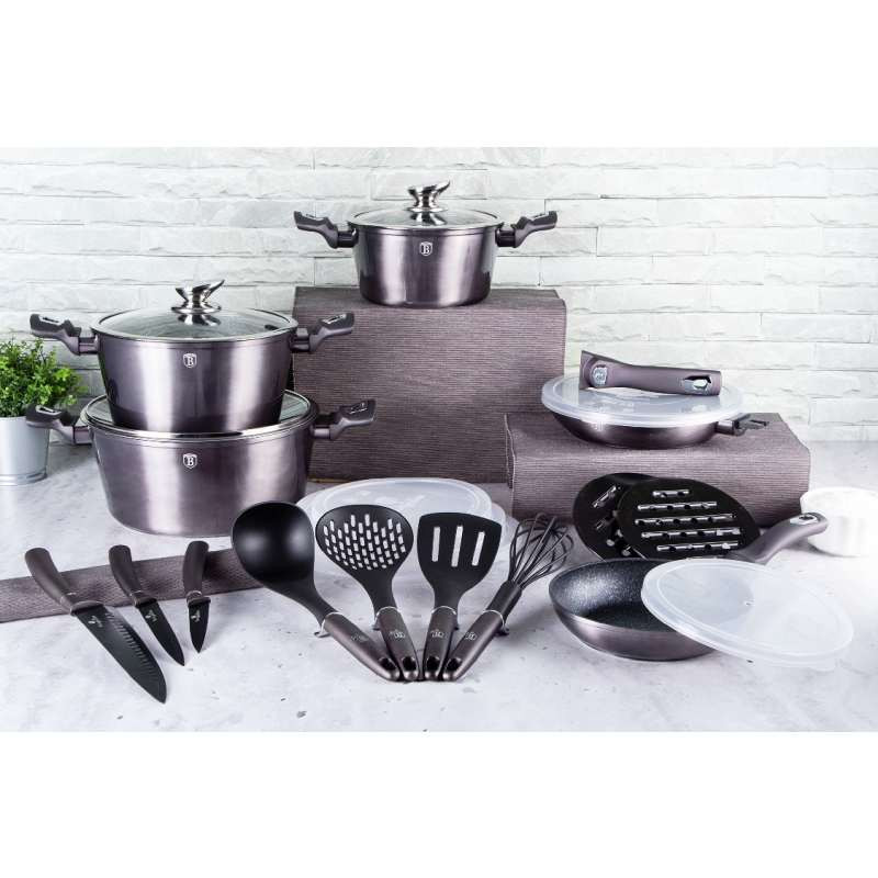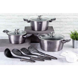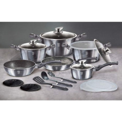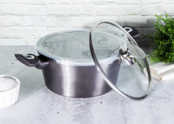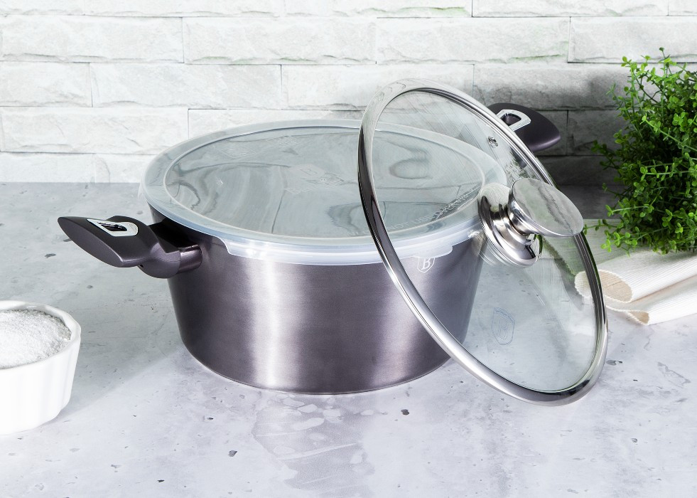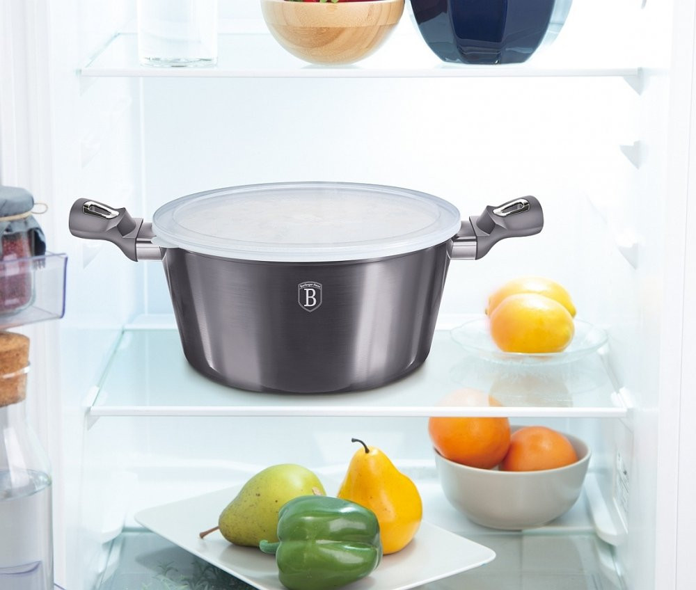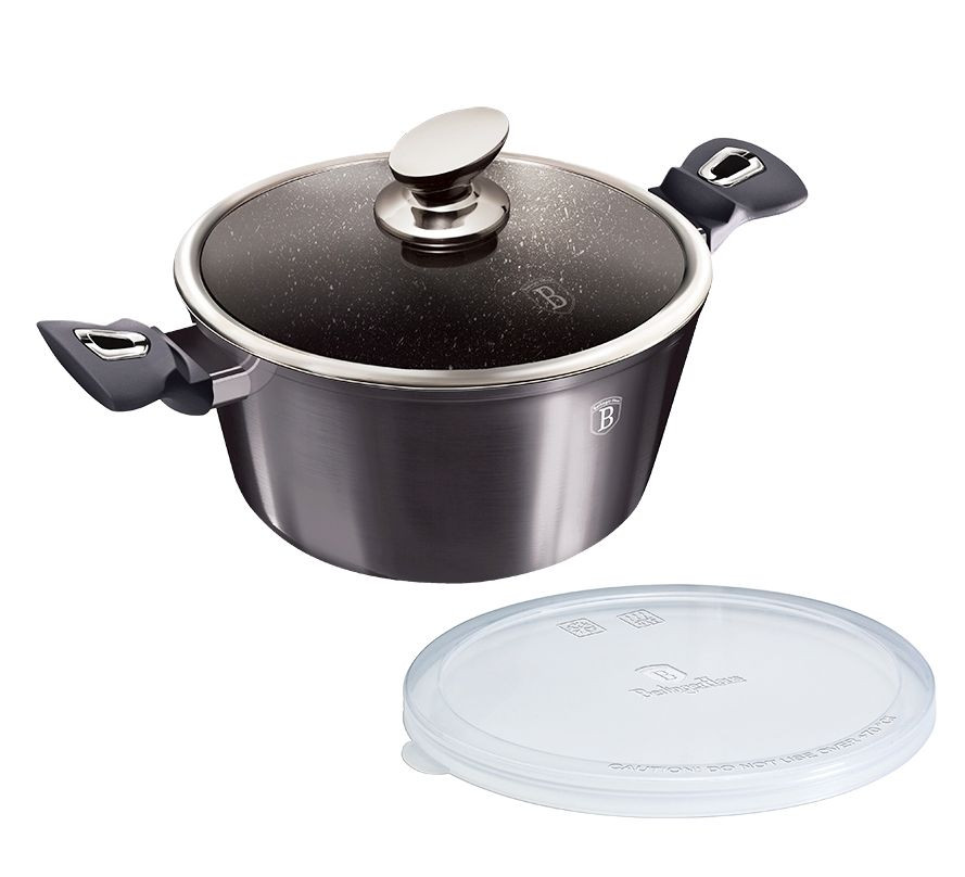 Kastról s mramorovým povrchom a pokrievkou v atraktívnom dizajne. Súčasťou kastróla je tiež presne padnúce plastové veko, ktoré vám uľahčí skladovanie uvareného jedla napríklad priamo v chladničke. - 3-vrstvový povrch s mramorovým dizajnom charakteristický svojou dokonalou nepriľnavosťou, pripravované potraviny sa nepripaľujú a vďaka tomu sa riad veľmi jednoducho čistí - zároveň je vhodný na zdravé varenie s minimom tuku alebo oleja, v závislosti na použitých surovinách pokojne aj bez jedinej kvapky tuku - vnútorná aj vonkajšia vrstva neobsahujú žiadne škodliviny, výsledné pokrmy tak nestrácajú varením svoje vitamíny - jadro kastróla z kovaného hliníka vyniká vysokou stabilitou a perfektnou tepelnou vodivosťou, takže sa nielen rýchlo a rovnomerne zahreje po celom povrchu, veľmi ľahko aj teplotu pri varení udržuje - zosilnené nerezové Turbo indukčné dno pre maximálnu efektivitu prípravy pokrmu - ergonomicky tvarované rukoväte majú protišmykovú mäkčenú úpravu, vďaka ktorej príjemne padnú do ruky a umožnia pevný a bezpečný úchop - vďaka izolačným prvkom zostávajú rukoväte po celú dobu varenia chladné a nepália - prednosťou je tiež pokrievka z tvrdeného žiaruvzdorného skla, ktorá je po obvode opatrená okrajom z nerezovej ocele 18/10 - jej dokonalý tvar dobre priľne k telu hrnca a integrovaný otvor prirodzene reguluje množstvo pary vo vnútri nádoby - súčasťou je aj priehľadné skladovacie viečko, ktoré spoľahlivo uzavrie kastról s už hotovým pokrmom - zaoblený prechod medzi dnom a stenami uľahčuje premiešavanie obsahu - telo kastróla je zakončené zosilneným okrajom pre lepšiu odolnosť voči nárazom - vhodný na všetky druhy sporákov aj na indukciu - vhodný tiež na zapekanie v rúre do maximálnej teploty 160°C - vďaka nadštandardným nepriľnavým vlastnostiam je čistenie rýchle a nenáročné, stačí umyť teplou vodou a hubkou - možno umývať aj v umývačke riadu - ideálny na každodenné varenie a dusenie akýchkoľvek pokrmov - ECOfriendly, použité materiály neobsahujú žiadne škodliviny ako Pfoa, olovo ani kadmium - kastról je vďaka svojmu perfektnému vzhľadu vhodný aj pre priame servírovanie pokrmov na stôl - rozmery: priemer horného okraja 20 x výška 10,4 cm - objem: 2,5 litra - rúra: 160°C - umývačka: áno - pokrievka: 1x sklenená + 1x plastová - indukcia: áno - sklokeramika: áno - plyn: áno - elektrina: áno - kolekcia: Carbon PRO Line - plastové veko nie je vhodné do rúry