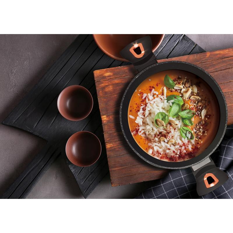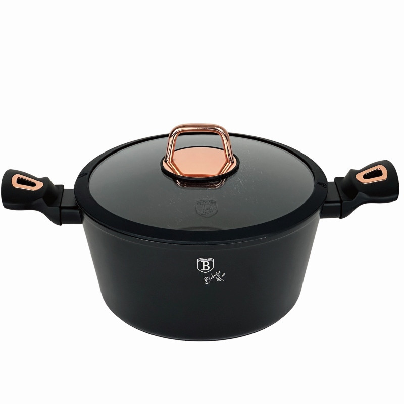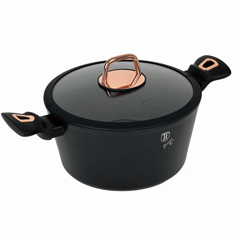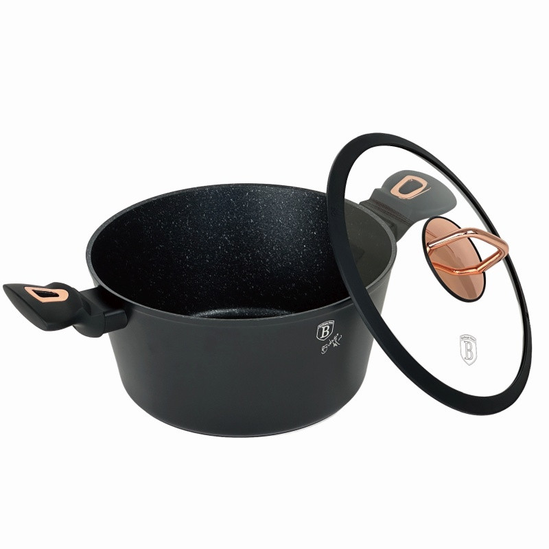- materiál: kovaný hliník s mramorovým povrchom - priemer: 24 cm - výška: 11,8 cm - objem: 4,1 l - farba: čierna/rosegold - žiaruvzdorná pokrievka so silikónovým okrajom - 3-vrstvový nepriľnavý povrch s mramorovým dizajnom - ergonomické mäkčené rukoväte - TURBO indukčné dno - vhodné na všetky druhy ohrevu aj na indukciu - vhodné do umývačky riadu - jednoduché čistenie! - úspora energie až 35% - elegantný dizajn - ECO FRIENDLY - neobsahuje PFOA, Olovo ani Kadmium