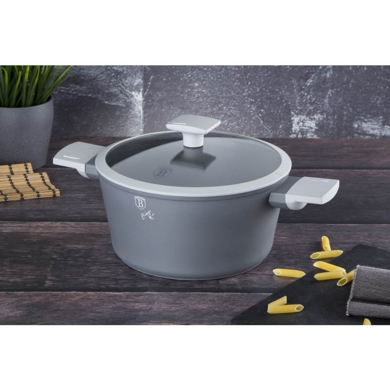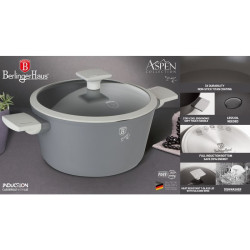 Univerzálny kastról s titánovým povrchom v šedom dizajne Aspen Collection. Moderný minimalistický dizajn kastróla vás určite zaujme hneď na prvý pohľad. Matný šedý povrch kastróla je navyše veľmi praktický pri dlhodobom používaní. Vnútorná vrstva je potiahnutá 3-vrstvovým titánovým povrchom, ktorý je charakteristický svojou dokonalou nepriľnavosťou. Pripravované pokrmy sa tak nepripaľujú a vďaka tomu sa kastról veľmi ľahko čistí. Zároveň je vhodný na zdravé varenie s minimom tuku alebo oleja, v závislosti na použitých surovinách pokojne aj bez jedinej kvapky tuku. Titánový povrch, rovnako ako ostatné použité materiály, neobsahujú žiadne škodlivé látky, varenie je tak úplne zdravé a hygienické. Zosilnené Turbo indukčné dno z nerezovej ocele je kompatibilné so všetkými druhmi varných dosiek a spoľahlivo funguje aj na indukcii. Iste oceníte tepelne izolovanú rukoväť, ktorá sa pri varení nezahrieva a zostáva stále chladná. Kastról Aspen je vhodný na každodenné varenie, dusenie aj vyprážanie, perfektne bude vyzerať aj pri servírovaní hotových jedál priamo na váš stôl. - vnútorná aj vonkajšia vrstva neobsahujú žiadne škodliviny, výsledné pokrmy tak nestrácajú varením svoje vitamíny - jadro kastróla z kovaného hliníka vyniká vysokou stabilitou a perfektnou tepelnou vodivosťou, takže sa nielen rýchlo a rovnomerne zahreje po celom povrchu, veľmi ľahko aj teplotu pri varení udržuje - zosilnené nerezové Turbo indukčné dno pre maximálnu efektivitu prípravy pokrmu - ergonomicky tvarovaná rukoväť s protišmykovou mäkčenou úpravou - tepelne odolná rukoväť, po celú dobu varenia je chladná a nepáli - vhodný na všetky druhy sporákov aj na indukciu - vhodný tiež na zapekanie v rúre do maximálnej teploty 160°C - vďaka nadštandardným nepriľnavým vlastnostiam titánového povrchu je čistenie kastróla rýchle a nenáročné, stačí umyť teplou vodou a hubkou - možno umývať aj v umývačke riadu - ideálny pre každodenné varenie, dusenie a smaženie akýchkoľvek pokrmov - vysoko atraktívny moderný dizajn s unikátnou vonkajšou farbou - kastról je vďaka svojmu dizajnu vhodná aj na servírovanie hotových pokrmov priamo na stôl - rozmery: priemer horného okraja 28 x výška 12,4 cm - objem 6,1 l - farba: šedá - sklenená pokrievka so silikónovým okrajom a úchopom - kolekcia: Aspen Collection - rúra: 160°C - indukcia: áno - sklokeramika: áno - plyn: áno - elektrina: áno - povrch: titánový