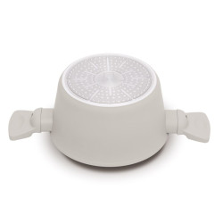 - Materiál: kovaný hliník s nepriľnavým povrchom titánPro - Rozmery: pr. 20*10,4 cm 2,5 l - Farba: matná krémová / - Trojvrstvový odolný nepriľnavý povrch titánPro - Ergonomická rukoväť Soft Touch Stay Cool - Cediaca pokrievka z tvrdeného skla s tepelne odolným silikónovým systémom Soft Close - Gombík z nerezovej ocele so zlatým PVD povlakom - Minimalistický štýl - Matná povrchová úprava - Na báze turboindukcie - Vhodné pre všetky typy varných dosiek - Šetrný k životnému prostrediu Neobsahuje PFOA, LEAD, kadmium - Ľahko sa čistí