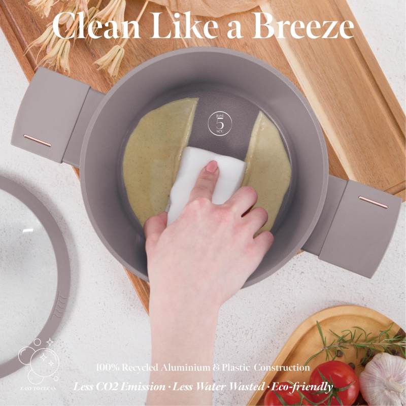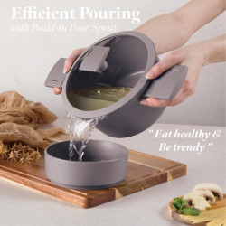 - Materiál: kovaný hliník s nepriľnavým povrchom titánPro - Rozmery: pr. 20*10,4 cm 2,5 l - Farba: matná taupe - Trojvrstvový odolný nepriľnavý povrch titánPro - Ergonomická rukoväť a gombík s mäkkým dotykom Stay Cool - Cediaca pokrievka z tvrdeného skla s tepelne odolným silikónovým systémom Soft Close - Minimalistický štýl - Matná povrchová úprava - Na báze turboindukcie - Vhodné pre všetky typy varných dosiek - Šetrný k životnému prostrediu Neobsahuje PFOA, LEAD, kadmium - Ľahko sa čistí