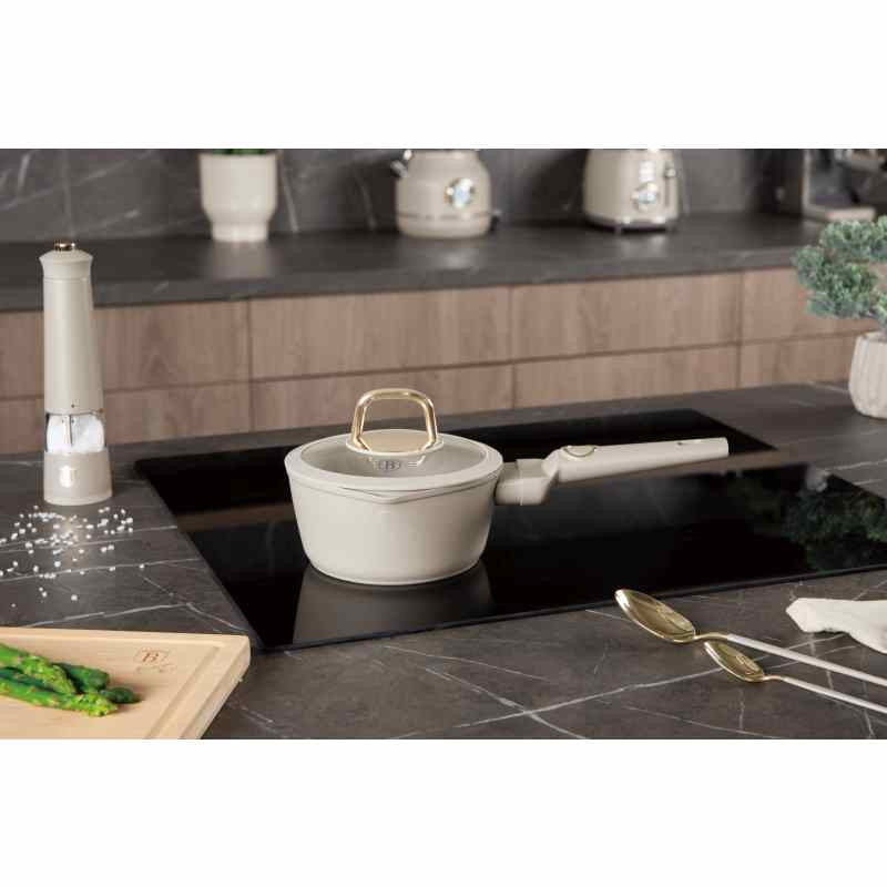 - Materiál: kovaný hliník s nepriľnavou vrstvou TitaniumPro- Rozmery: priemer 16*7 cm 1,2 l- Farba: matná krémová- trojvrstvový odolný nepriľnavý povrch titaniumPro- Ergonomická rukoväť Soft Touch Stay Cool- Pokrievka z tvrdeného skla so žiaruvzdorným silikónovým systémom Soft Close- Otočný gombík z nehrdzavejúcej ocele so zlatou PVD povrchovou úpravou- Otvor na paru- Minimalistický štýl - Matný povrch- Na báze turboindukcie- Vhodný pre všetky typy varných dosiek- Šetrný k životnému prostrediuNeobsahuje PFOA, olovo, kadmium- Ľahko sa čistí