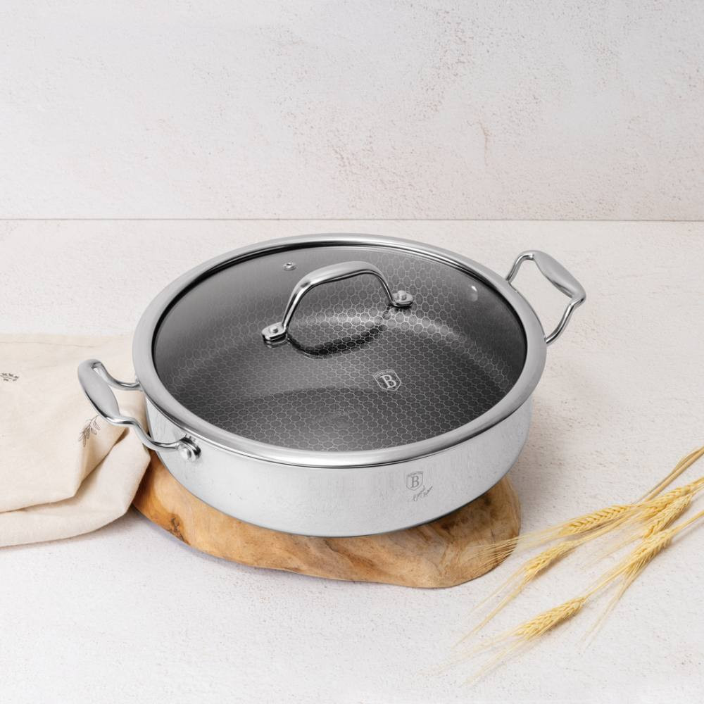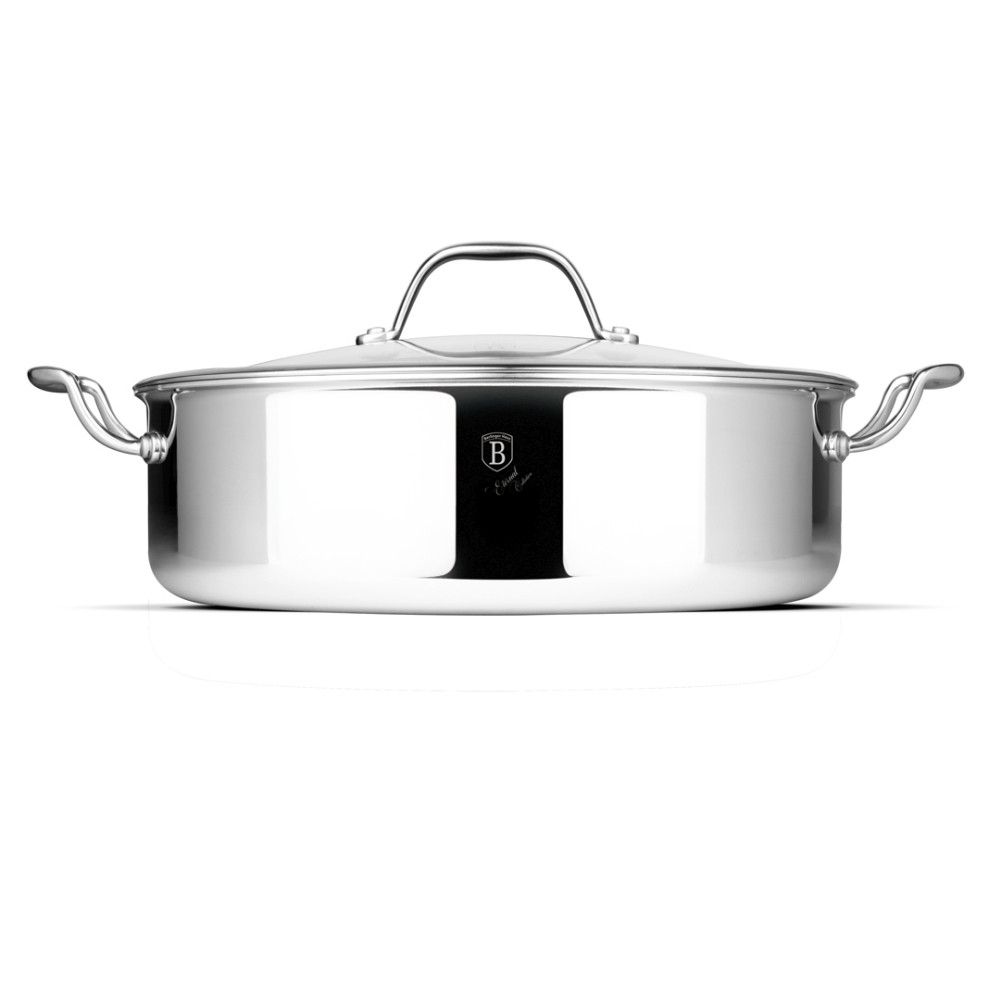 Kastról z nehrdzavejúcej ocele s pokrievkou 28 cm Eternal CollectionDoprajte si pohodlné a efektívne varenie s týmto elegantným kastrólom z kolekcie Eternal. Tento plytký hrniec s pokrievkou v sebe spája kvalitné spracovanie, moderný dizajn a praktické funkcie, ktoré oceníte pri každodennej príprave jedál.Konštrukcia z nehrdzavejúcej ocele zaručuje vysokú odolnosť a dlhú životnosť, zatiaľ čo nepriľnavý povrch uľahčuje varenie a následné čistenie. Vďaka rovnomernému rozloženiu tepla dosiahnete dokonalé výsledky pri príprave omáčok, dusení a varení mäsa. Sklenená pokrievka s prieduchom na odvod pary vám umožní pohodlne kontrolovať proces varenia.Kastról je vhodný na všetky typy sporákov vrátane indukcie, takže je univerzálnym pomocníkom do každej kuchyne.Priemer: 28 cm Materiál: nehrdzavejúca oceľ s nepriľnavým povrchom Pokrievka: sklenená s odvetrávaním pary Vhodná na všetky typy sporákov vrátane indukcie Rovnomerné rozloženie tepla Jednoduchá údržba Spoľahlivý kastról na pohodlné varenie s dôrazom na odolnosť a jednoduché používanie.