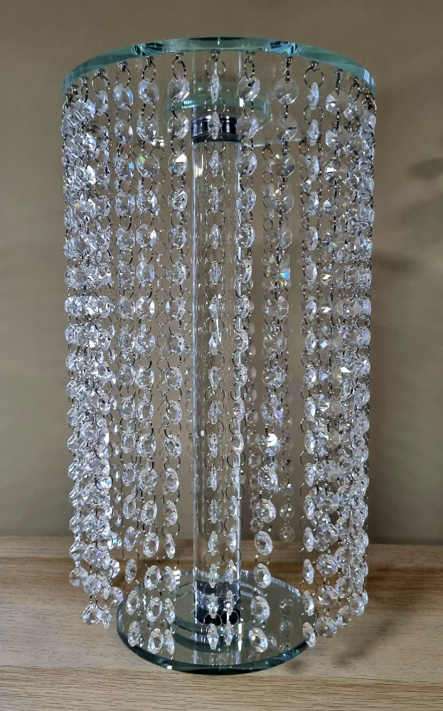 Luxusný krištáľový svietnik alebo podstavec zohráva dôležitú úlohu na stole, v jedálni alebo v obývacej izbe taktiež na oslavách ako sú jubileá či svadby. Krásna ozdoba, ktorá dodá šarm a prestíž každému interiéru. Kombinácia skla a zrkadlového odrazu dodáva úžasný efekt luxusu a elegancie. Môžete si krištáliky upraviť podľa svojich predstáv dlhšie / kratšie.