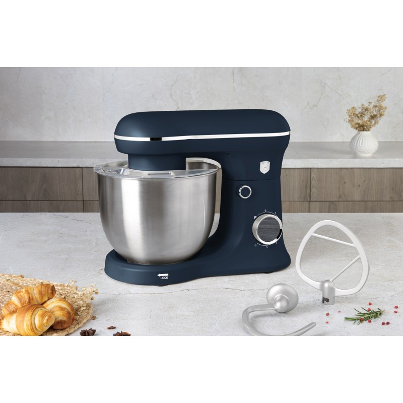 Kuchynský robot 1500 W - výkonný pomocník s eleganciou a štýlom Objavte silu a ladnosť v jednom s týmto štýlovým kuchynským robotom, ktorý zvládne aj tie najnáročnejšie úlohy a pritom poteší oko svojim moderným dizajnom v matnej modrej so šedým dreveným dekorom. Silný motor s výkonom 1500 W spolu s nerezovou misou s objemom 5 litrov dáva priestor aj pre väčšie dávky cesta či krémov. S nepriľnavými nástavcami – hákom, šľahačom a metlou – pripravíte všetko od nadýchaných tortových korpusov po hutné kysnuté cesto. Tichý chod, pulzná funkcia a prehľadné ovládanie s LED kontrolkou zaistí maximálny komfort pri každom použití. A údržba? Jednoduchá a rýchla. Materiál: Kvalitná kombinácia nerezovej ocele a odolného plastu Výkon: 1500 W, 220 – 240 V, 50/60 Hz – spoľahlivý výkon pre každú výzvu Príslušenstvo: Nerezová misa 5 l (18/10) Nepriľnavý hák na cesto Nepriľnavý šľahač Metla Ochrana proti striekajúcej vode Rýchlosti: 6 úrovní + pulzná funkcia pre presné nastavenie podľa potreby Dizajn: Elegantná matná modrá s dekorom šedého dreva – štýlový doplnok kuchyne Vlastnosti: LED kontrolka napájania Tichý motor Jednoduché otváranie a zatváranie Jednoduché čistenie Doprajte si radosť z pečenia aj varenia s robotom, ktorý vám bude robiť spoločnosť každý deň – spoľahlivo, ticho as gráciou.