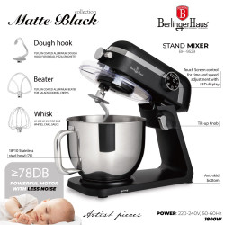 Kuchynský robot Berlingerhaus BH/9529 z kolekcie Matte Black je elegantný a praktický pomocník do každej modernej kuchyne. Tento výkonný robot vám umožní jednoducho a rýchlo pripraviť rôzne pokrmy vďaka širokej škále funkcií a príslušenstva. Planetárne miešanie na dôkladné premiešanie. Dotykové ovládanie s LED displejom. Tichá prevádzka vďaka špeciálnej konštrukcii. Nastavenie času a rýchlosti pomocou dotykového displeja. Ideálne na prípravu rôznych pokrmov, od miešania a miesenia cesta po šľahanie. Nerezová oceľ a plastové časti sa ľahko čistia, čo šetrí čas v kuchyni. Elegantná matná čierna farba dodá vašej kuchyni luxusný vzhľad. Pohodlný a bezpečný úchop pri používaní. Hliníkový odliatok a nerezová oceľ pre dlhú životnosť. - Materiál: Hliníkový odliatok a nerezová oceľ pre dlhú životnosť a ľahké čistenie. - Výkon: 1800 W pre maximálnu efektivitu. - Kapacita: Nerezová misa s objemom 7 litrov. - Design: Elegantná matná čierna farba, ktorá dodá vašej kuchyni moderný vzhľad. - Tri miešacie nástavce: šľahač, hnetací hák a miešacia lopatka. Vylepšite svoju kuchyňu s kuchynským robotom Berlingerhaus BH/9529 a užite si radosť z varenia každý deň.
