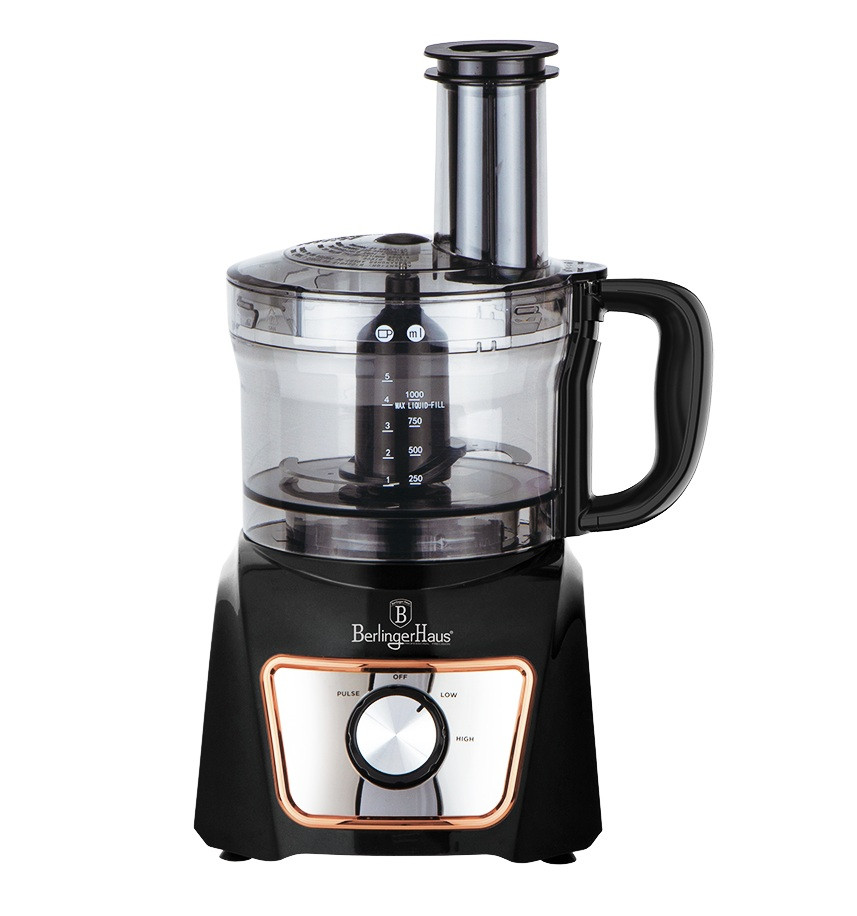 Kolekcia Black Rose je elegantný a štýlový rad, ktorý kombinuje nerezovú oceľ a plast, aby dokonale zapadla do moderných kuchýň. S výkonom 500 W vám 8dielny kuchynský robot uľahčí prácu v kuchyni pri kosení, krájaní, mixovaní alebo miesení. Ľahko sa používa a je praktický, takže by vám nemal chýbať medzi kuchynským náradím. Hlavné vlastnosti a výhody: Nerezová oceľ a plast pre odolnosť a štýl. 500W motor uľahčuje prácu v kuchyni. Napätie 220-240V, 50/60 Hz pre ľahké zapojenie do akejkoľvek zásuvky. Nerezový kotúč na strúhanie, 2stranný nerezový plátkovací kotúč, 1500ml plastová nádoba na smoothie s odnímateľným viečkom, emulgačný kotúč, hnetacia hlava, odšťavovač na citróny a 1000ml nerezová strúhadlo. Protišmyková gumová základňa: Zaisťuje stabilnú prevádzku a bezpečnosť pri používaní. - Výkon: 500W - Nádoba: 1,5 litra - 2 rýchlosti - pulzný otočný gombík - dvojitý bezpečnostný zámok - farba čierna/ružová Kuchynský robot Black Rose Collection je nielen praktickým a štýlovým doplnkom do kuchyne, ale vďaka rôznym funkciám a príslušenstvu tiež uľahčuje každodenné kuchynské úlohy. Kombinácia nerezovej ocele a plastu zaručuje odolnosť a ľahké čistenie, zatiaľ čo čierna a ružovo zlatá farba robí kuchynský robot jedinečným. Materiál: nerezová oceľ, plast - napätie: 220-240v 50-60hz - výkon: 500w - nôž z nerezovej ocele - 2stranný nerezový krájací kotúč - 1500 ml plastová nádoba mixéra s odnímateľným uzáverom plniaceho otvoru - emulgačný disk - emulgačný disk - 1000 ml miska na sekanie - nádoba na sekanie na 8 šálok s rukoväťou pre ľahké uchopenie - 2 rýchlosti s pulzným otočným spínačom - protišmyková spodná základňa s gumovými nožičkami - dvojitý bezpečnostný zámok proti nechcenému spusteniu - farba: čierna / rosegold - značka: berling