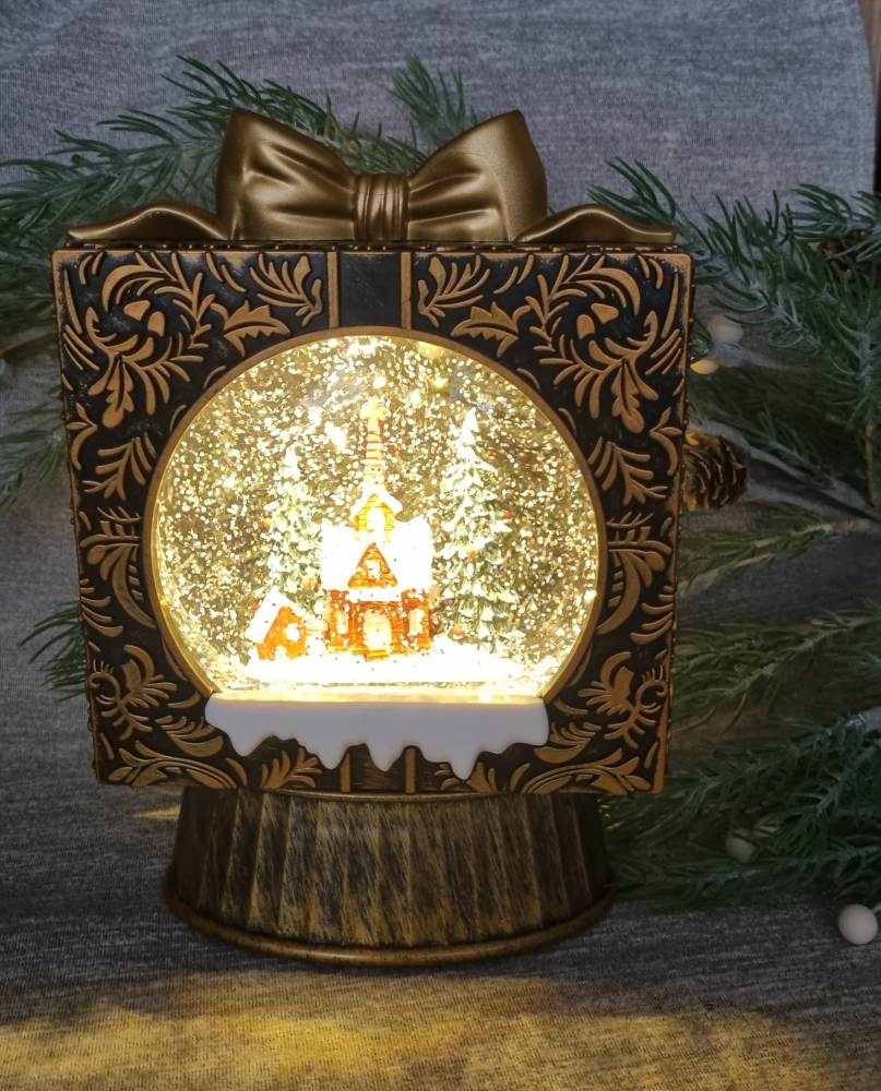 Krásny snehový darček je roztomilá vianočná ozdoba, ktorá očarí svojou jednoduchosťou a mágiou. Kostolík umiestnený vo vnútri zobrazuje zimnú scenériu, ktorá, akonáhle sa zapne, krásne zvýrazní sa rotujúci sneh.Originálna vianočná dekorácia. Perfektný doplnok do každého interiéru. Ideálny darček pre každého milovníka Vianoc.
