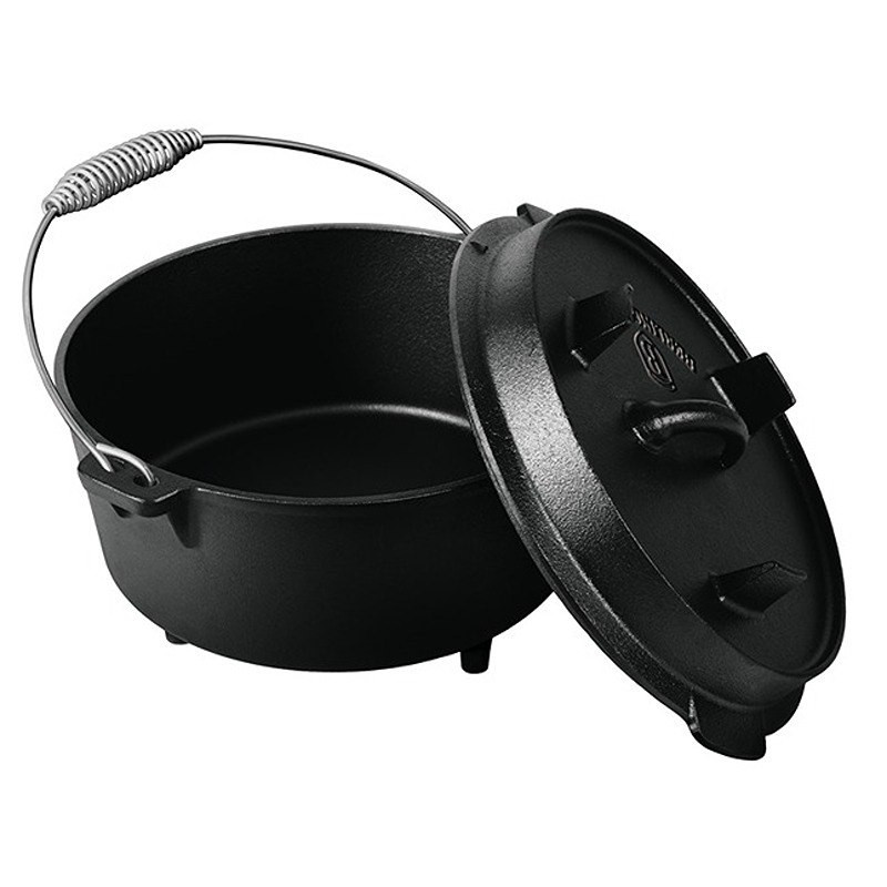 Tento liatinový hrniec je ideálny na použitie v rúre a na záhradnej párty na ohni alebo grile. Je vyrobený z ťažkej liatiny, ktorá rovnomerne prenáša a udržiava teplo. Hrniec má objem 4 litre a jeho rozmery sú 25 × 14,5 cm. Je vybavený pokrievkou s rukoväťou z nehrdzavejúcej ocele. Čierna farba dodáva hrncu elegantný vzhľad.
