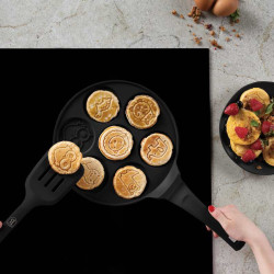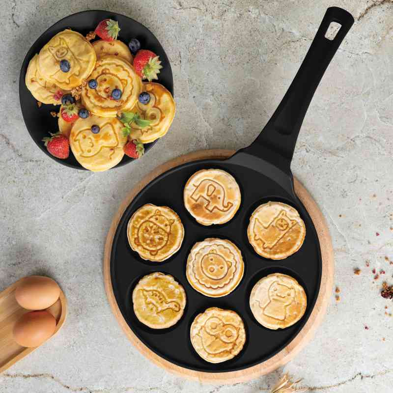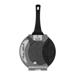 Lívanečník 26 cm 4 pozície Monaco Collection Popis produktu: Tento lievanečník s priemerom 26 cm je vyrobená z kvalitného liateho hliníka a navrhnutý pre jednoduchú a efektívnu prípravu dokonalých lievancov. Vďaka 2vrstvovému nepriľnavému povlaku sa jedlo nepripaľuje a ergonomická rukoväť Soft-touch zaisťuje pohodlné používanie. Panvica je vhodná pre všetky typy varných dosiek, vrátane indukcie, a šetrí energiu. S elegantným dizajnom, možnosťou zavesenia a ekologicky šetrnými materiálmi je nielen praktická, ale aj štýlová a šetrná k životnému prostrediu. Vlastnosti produktu: - materiál: liaty hliník - panvica na 7 ks lievancov 26 cm x 1,3 cm obrázok zvieratko - farba: matná čierna - 2vrstvový nepriľnavý povlak - ergonomická rukoväť soft-touch - indukčné dno - vhodné pre všetky typy varných dosiek vrátane indukčných (úspora energie) - elegantný dizajn - možnosť zavesenia - ekologicky šetrné, bez PFOA, olova a kadmia