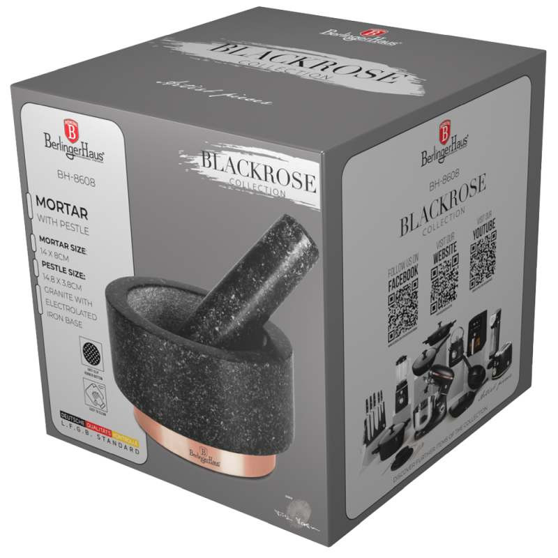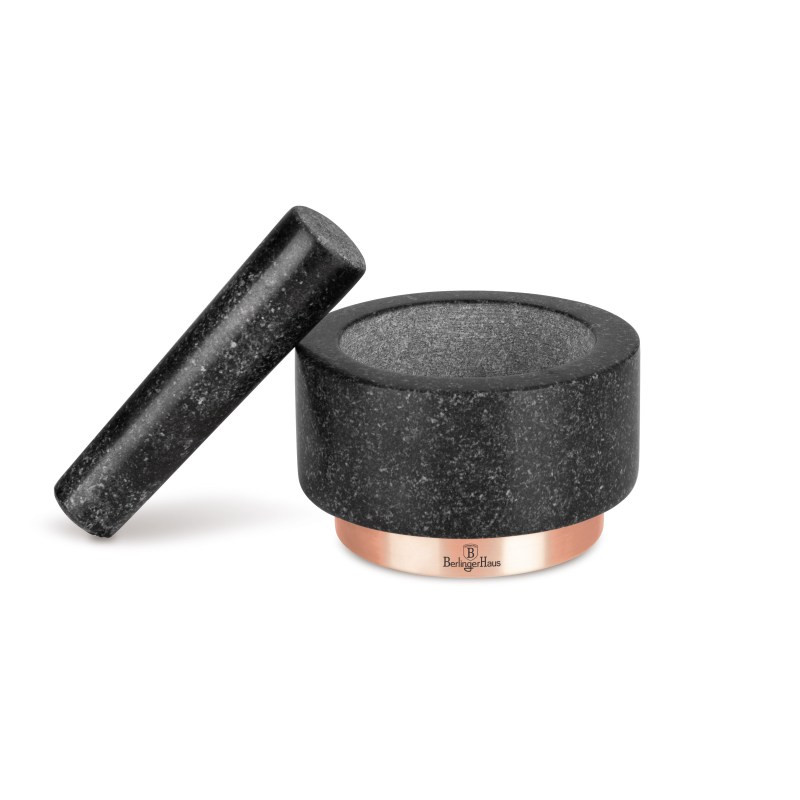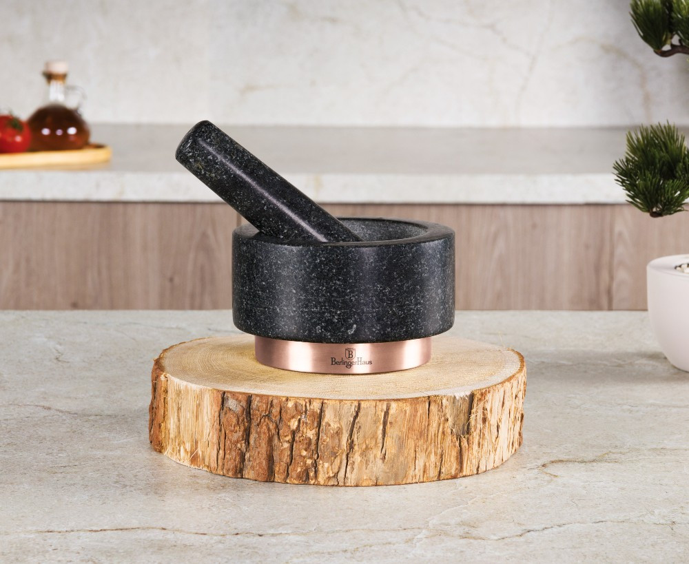 Objavte eleganciu a praktickosť s mažiarom Berlingerhaus BH-8608 z kolekcie Black Rose. Pokiaľ milujete chuť a vôňu čerstvého korenia, potom bude štýlový žulový pesthog kolekcie Black Rose vašim novým obľúbeným nástrojom v kuchyni. - Materiál: Vyrobený z pravého granitu pre dlhú životnosť a efektívne drvenie. - Veľkosť: 14 x 8 cm, ideálna na prípravu menších i väčších množstiev. - Hmotnosť: 1,8 kg, čo zaisťuje stabilitu pri používaní. - Design: Elegantná čierna farba s ružovo zlatými akcentmi, ktoré dodajú vašej kuchyni nádych luxusu. - Funkcia: Perfektné pre drvenie korenia, byliniek a prípravu pesta. S mažiarom Berlingerhaus BH/8608 môžete ľahko a rýchlo pripraviť čerstvé a aromatické zmesi korenia a byliniek. Vďaka kvalitnému materiálu a modernému dizajnu je čistenie ľahké a rýchle.