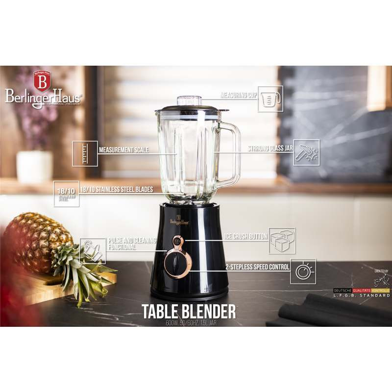 - výkonný stolný mixér so sklenenou nádobou z kolekcie Black Rose Collection - 2 rýchlostné stupne s pulznou funkciou - kontrola bezpečnej prevádzky, mixér je možné spustiť iba s riadne uzavretou nádobou - nádoba z tvrdeného skla odolná proti nárazom a poškriabaniu - štvornásobná čepeľ vhodná aj na drvenie ľadu - protišmykové nožičky na spodnej strane mixéra - príkon 600 W - bohatý objem nádoby 1,5 l - farba: čierno-ružová - kolekcia: Emerald Collection