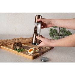 -materiál: nerezová oceľ - keramický mlecí mechanizmus - kryt v spodnej časti - výška: 23 cm - priemer: 5,5 cm - vhodný na korenie alebo soľ aj iné hrubé korenie