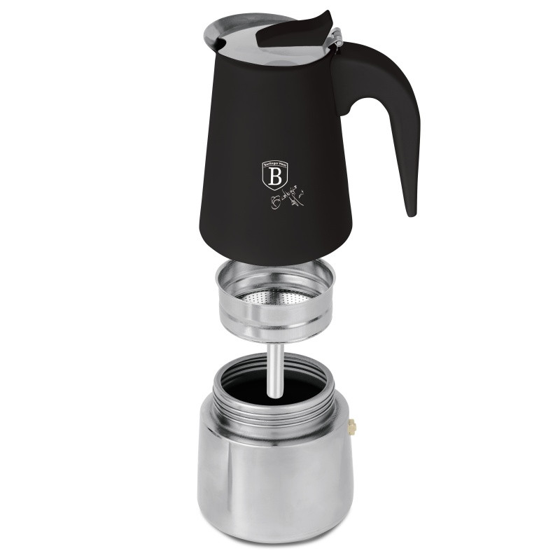 Nerezová moka indukčná kanvica 6 šálok Matte Black Collection BerlingerHaus BH-8912