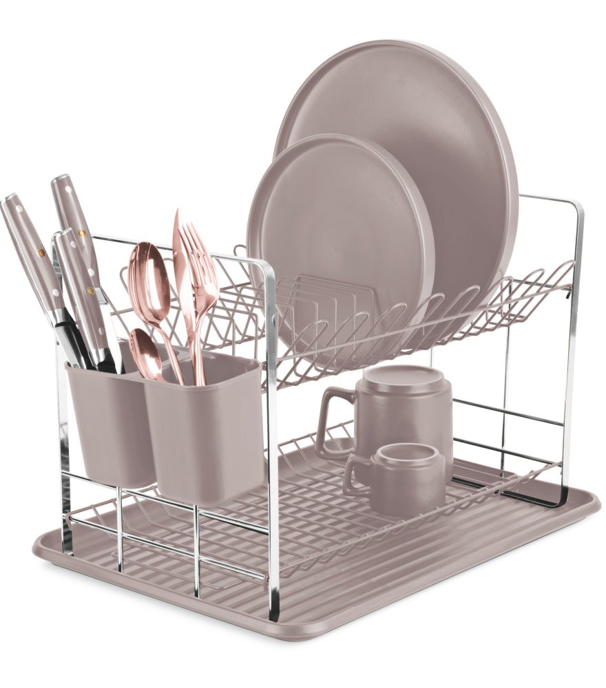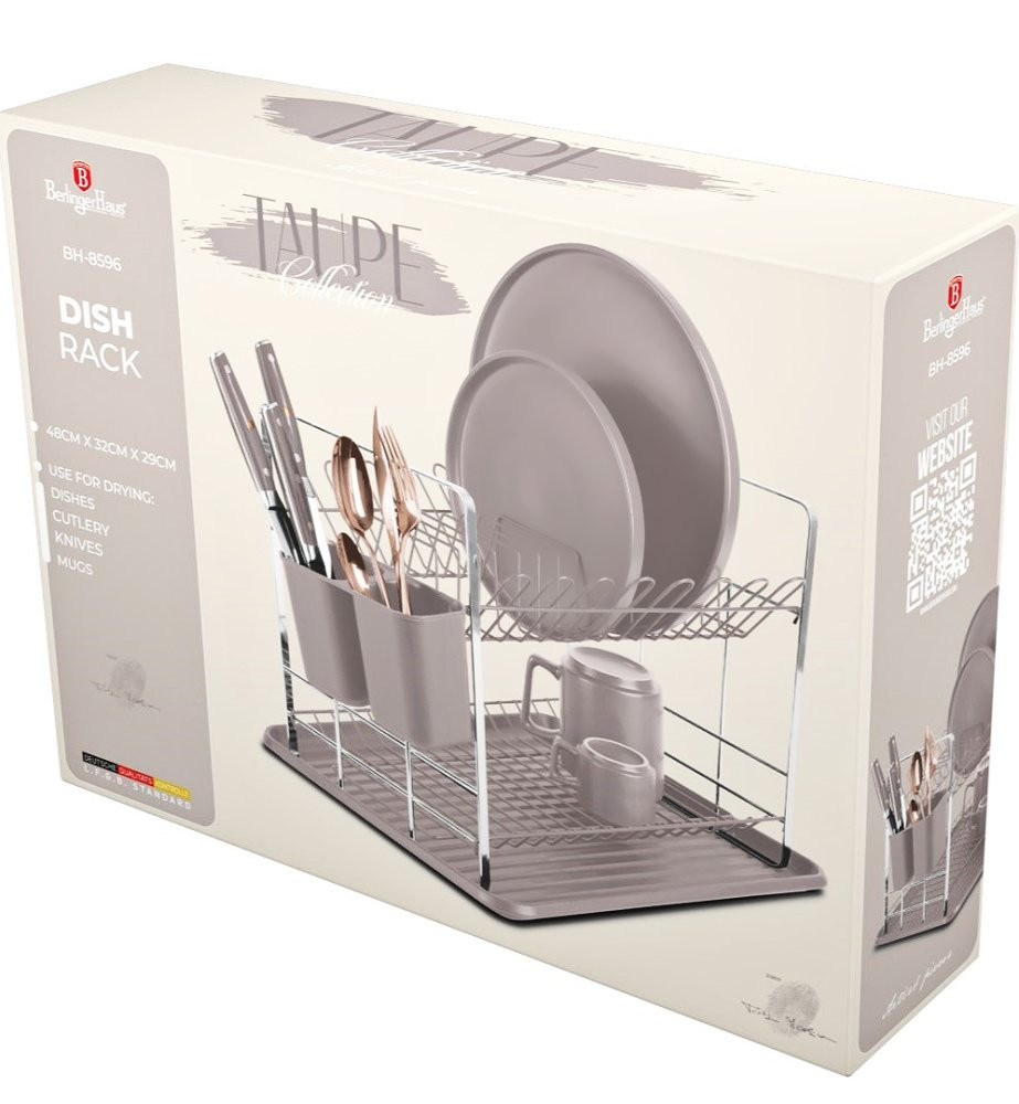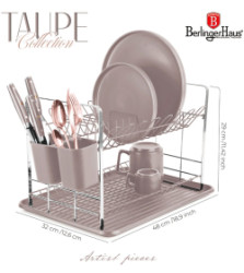 Dvojposchodový odkvapkávač na riad z kolekcie Taupe od BerlingerHaus. Odnímateľná odkvapkávacia tácka. Dve poschodia pre riad či poháre a dva zásobníky na príbory a náčinie. Jednoduchá údržba a čistenie. Dizajnový kúsok vyrobený v kombinácii plastu a kovu. Rozmery 48 x 32 x 29 cm