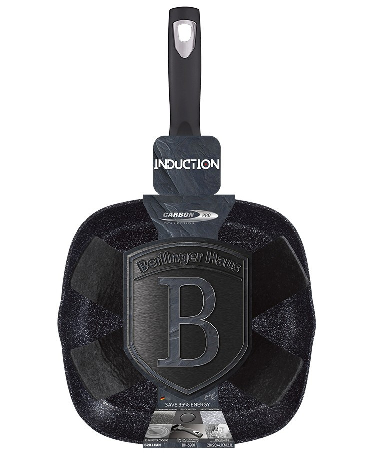 - grilovacia panvica s mramorovým povrchom a ergonomickou rukoväťou v atraktívnom dizajne - 3-vrstvový povrch s mramorovým dizajnom charakteristický svojou dokonalou nepriľnavosťou, pripravované potraviny sa nepripaľujú a vďaka tomu sa panvica veľmi jednoducho čistí - zároveň je vhodný na zdravé varenie s minimom tuku alebo oleja, v závislosti na použitých surovinách pokojne aj bez jedinej kvapky tuku - vnútorná aj vonkajšia vrstva neobsahujú žiadne škodliviny, výsledné pokrmy tak nestrácajú varením svoje vitamíny - jadro panvice z kovaného hliníka vyniká vysokou stabilitou a perfektnou tepelnou vodivosťou, takže sa nielen rýchlo a rovnomerne zahreje po celom povrchu, veľmi ľahko aj teplotu pri varení udržuje - zosilnené nerezové Turbo indukčné dno pre maximálnu efektivitu prípravy pokrmu - ergonomicky tvarovaná rukoväť má protišmykovú mäkčenú úpravu, vďaka ktorej skvele padne do ruky, dobre sa s ňou manipuluje a umožní pevný a bezpečný úchop - vďaka izolačným prvkom zostáva rukoväť po celú dobu varenia chladná a nepáli - telo panvy je zakončené zosilneným okrajom pre lepšiu odolnosť voči nárazom - vhodná na všetky druhy sporákov aj na indukciu - vhodná tiež na zapekanie v rúre do maximálnej teploty 160°C - vďaka nadštandardným nepriľnavým vlastnostiam je čistenie rýchle a nenáročné, stačí umyť teplou vodou a hubkou - možno umývať aj v umývačke riadu - ideálny na každodenné varenie, dusenie a smaženie akýchkoľvek pokrmov, predovšetkým na prípravu mäsa a zeleniny - ECOfriendly, použité materiály neobsahujú žiadne škodliviny ako Pfoa, olovo ani kadmium - vysoko atraktívny moderný dizajn v metalických farbách - panvica je vďaka svojmu perfektnému vzhľadu vhodná aj na priame servírovanie pokrmov na stôl - rozmery horného okraja 28 x 28 x výška 4 cm - indukcia: áno - sklokeramika: áno - elektrina: áno - plyn: áno - rúra: 160°C - umývačka: áno - kolekcia: Carbon PRO Line Medzi nenahraditeľné vybavenie kuchyne patria nielen poháre, hrnce a príbory, ale rozhodne aj panvice. Prípravu obľúbených pokrmov vám uľahčia a práca s nimi vám pôjde od ruky! Bez kvalitnej panvice by váš talent nebol v kuchyni plne využitý! Zaobstarajte si panvicu na vyprážanie, pečenie alebo grilovanie mäsa, zeleniny a ďalších surovín. Príprava jedla bude rýchlejšia a vy budete mať na tanieri zdravé pokrmy. Druhy kuchynských panvíc V našej ponuke panvíc nájdete rôzne druhy panvičiek pre široké možnosti využitia. S grilovacou panvicou si doma pripravíte mäso a zeleninu ako z grilu. Hlboké panvice využijete na varenie cestovín a polievok. Palacinkové panvičky sú ideálne na prípravu tenkých palaciniek, lievanečníkové panvice na prípravu lievancov a servírovacie panvice budú zdobiť slávnostnú tabuľu a udržiavať jedlo v teple. Univerzálny wok je skvelý na prípravu ázijských pokrmov. Vo woku rýchlo usmažíte mäso a zeleninu pri vysokých teplotách a jedlo bude mať vynikajúcu chuť a arómu. Vo vašej kuchyni sa bude určite vynímať panvička vo farbe čierna! Grilovacia panvica Milujete grilovanie, a celú zimu sa tešíte, až sa oteplí, a vy budete môcť vytiahnuť svoj gril a pochutnať si na grilovanom steaku alebo syre? S grilovacou panvicou si skvelé a zdravé grilované pokrmy môžete pripravovať po celý rok vo vašej kuchyni! V našej ponuke nájdete široký výber grilovacích panvíc, ktoré sú ideálne na prípravu vynikajúcich a zdravých jedál . Čo všetko môžete na grilovacej panvici pripraviť? Rôzne druhy mäsa, ryby, zeleninu, špízy a ovocie. Výsledkom bude šťavnaté, chutné a zdravé jedlo, ktoré uspokojí maškrtné jazýčky. Ako správne používať grilovaciu panvicu? Postup je veľmi jednoduchý. Panvice sú vyrobené z kvalitného materiálu, ktorý dokáže rovnomerne rozložiť teplo a zaistiť tak, že sa jedlo budete grilovať rýchlo a bez zbytočného pripaľovania. Pred použitím panvice, ju vždy postriekajte olejom , aby sa jedlo nelepilo. Panvice sú vybavené praktickou rukoväťou, vďaka ktorej sa vám s ňou bude ľahko manipulovať. Hlavnou výhodou grilovacích panvíc je rýchlosť prípravy jedla. Jedlo bude pripravené v priebehu niekoľkých minút a môžete ihneď podávať. Toto grilovanie vám počasie nezhatí!