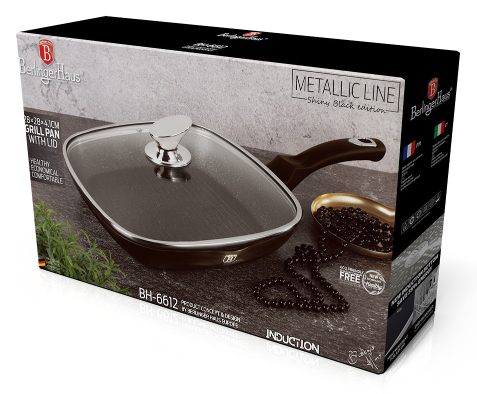 - Panvica grilovacia s pokrievkou 28 cm Shiny Black Collection