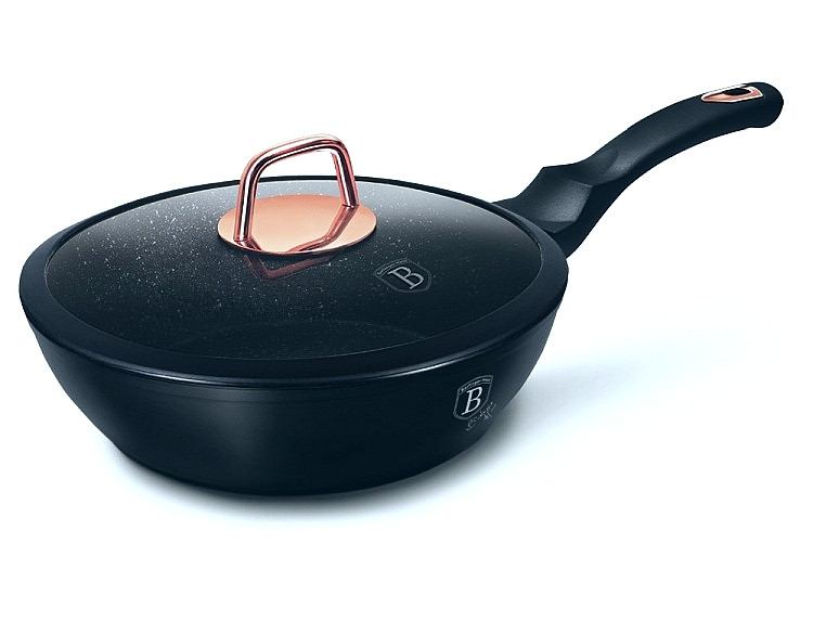 - materiál: kovaný hliník s mramorovým povrchom - priemer: 24 cm - výška: 6,5 cm - farba: čierna/rosegold - žiaruvzdorná pokrievka so silikónovým okrajom - 3-vrstvový nepriľnavý povrch s mramorovým dizajnom - ergonomické mäkčené rukoväte - TURBO indukčné dno - vhodné na všetky druhy ohrevu aj na indukciu - vhodné do umývačky riadu - jednoduché čistenie! - úspora energie až 35% - elegantný dizajn - ECO FRIENDLY - neobsahuje PFOA, Olovo ani Kadmium Medzi nenahraditeľné vybavenie kuchyne patria nielen poháre, hrnce a príbory, ale rozhodne aj panvice. Prípravu obľúbených pokrmov vám uľahčia a práca s nimi vám pôjde od ruky! Bez kvalitnej panvice by váš talent nebol v kuchyni plne využitý! Zaobstarajte si panvicu na vyprážanie, pečenie alebo grilovanie mäsa, zeleniny a ďalších surovín. Príprava jedla bude rýchlejšia a vy budete mať na tanieri zdravé pokrmy. Druhy kuchynských panvíc V našej ponuke panvíc nájdete rôzne druhy panvičiek pre široké možnosti využitia. S grilovacou panvicou si doma pripravíte mäso a zeleninu ako z grilu. Hlboké panvice využijete na varenie cestovín a polievok. Palacinkové panvičky sú ideálne na prípravu tenkých palaciniek, lievanečníkové panvice na prípravu lievancov a servírovacej panvice budú zdobiť slávnostnú tabuľu a udržiavať jedlo v teple. Univerzálny wok je skvelý na prípravu ázijských pokrmov. Vo woku rýchlo usmažíte mäso a zeleninu pri vysokých teplotách a jedlo bude mať vynikajúcu chuť a arómu. Vo vašej kuchyni sa bude určite vynímať panvička vo farbe čierna! Panvica má kvalitnú povrchovú úpravu , vďaka ktorej sa vám s ňou bude dobre pracovať a ľahko z nej odstránite nečistoty. Panvicu môžete tiež bez obáv dať umývať do umývačky. Máte veľkú rodinu alebo čakáte veľkú návštevu, na ktorú chcete pripraviť chutné jedlo? Potom je hlboká panvica to pravé pre vás a vašu kuchyňu! V hlbokej panvici pripravíte naraz väčšie množstvo jedla , ako sú napríklad polievky , guláš , rizoto a mnoho ďalšieho. V ponuke máme široký výber hlbokých panvíc, ktoré sú vyrobené z kvalitného materiálu , teda sú odolné av kuchyni vám budú dlho slúžiť. Hlboké panvice sú vybavené praktickou a pevnou rukoväťou, vďaka ktorej sa vám bude s panvicou dobre manipulovať, čo oceníte obzvlášť pri príprave väčšieho množstva jedla. Príprava jedla v tomto type panvy nemá žiadny predpísaný postup. Odporúčame používať kvalitné a zdravé suroviny, ktoré sú dôležité na výslednú chuť a kvalitu jedla. Hlboké panvice sú vhodné na varenie , vyprážanie aj dusenie . Pripravíte v nej rôzne druhy chutných jedál.