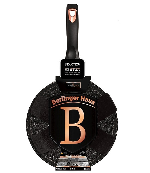 Elegantná panvica na palacinky od značky BerlingerHaus s ergonomickou rukoväťou, ktorá pri varení nikdy nepáli. Palacinková panvica má netradične znížený okraj, aby sa vám cesto ľahko obracalo. nepriľnavý povrch s mramorovým dizajnom uľahčí prípravu palaciniek, ku ktorým nemusíte pridať ani kvapku oleja navyše. Cesto sa nepripaľuje a čistenie je otázkou len pár sekúnd. Panvica na palacinky je kompatibilná so všetkými druhmi ohrevu a je vhodná aj na indukciu. - materiál: kovaný hliník s mramorovým povrchom - 3 vrstvový nepriľnavý povrch s mramorovým designom - povrch je vhodný na zdravé varenie s minimom tuku - žiaruvzdorná rukoväť pre pohodlný úchop - rukoväť sa nezahrieva, zostáva vždy chladná - TURBO indukčné dno, úspora energie až 35% - panvica je vhodná na všetky druhy ohrevu aj na indukciu - možno umývať v umývačke riadu - jednoduché čistenie vďaka nepriľnavému povrchu - elegantný dizajn v čiernej farbe - ECO FRIENDLY prevedenie, neobsahuje žiadne škodlivé látky ako PFOA, Olovo ani Kadmium - priemer: 25 cm - umývačka: áno - rúra: 160°C - indukcia: áno - sklokeramika: áno - elektrina: áno - plyn: áno - kolekcia Black Rose Collection Medzi nenahraditeľné vybavenie kuchyne patria nielen poháre, hrnce a príbory, ale rozhodne aj panvice. Prípravu obľúbených pokrmov vám uľahčia a práca s nimi vám pôjde od ruky! Bez kvalitnej panvice by váš talent nebol v kuchyni plne využitý! Zaobstarajte si panvicu na vyprážanie, pečenie alebo grilovanie mäsa, zeleniny a ďalších surovín. Príprava jedla bude rýchlejšia a vy budete mať na tanieri zdravé pokrmy. Druhy kuchynských panvíc V našej ponuke panvíc nájdete rôzne druhy panvičiek pre široké možnosti využitia. S grilovacou panvicou si doma pripravíte mäso a zeleninu ako z grilu. Hlboké panvice využijete na varenie cestovín a polievok. Palacinkové panvičky sú ideálne na prípravu tenkých palaciniek, lievanečníkové panvice na prípravu lievancov a servírovacie panvice budú zdobiť slávnostnú tabuľu a udržiavať jedlo v teple. Univerzálny wok je skvelý na prípravu ázijských pokrmov. Vo woku rýchlo usmažíte mäso a zeleninu pri vysokých teplotách a jedlo bude mať vynikajúcu chuť a arómu. Vo vašej kuchyni sa bude určite vynímať panvička vo farbe čierna! Panvica má kvalitnú povrchovú úpravu , vďaka ktorej sa vám s ňou bude dobre pracovať a ľahko z nej odstránite nečistoty. Panvicu môžete tiež bez obáv dať umývať do umývačky. Pochutnávate si doma radi na palacinkách? A pripravujete si ich na palacinky panvici? Pokiaľ ju doma ešte nemáte, je načase. Palacinky ale nie sú jediným pokrmom, ktorý môžete na tejto panvici pripraviť. Panvica je vhodná aj na prípravu placiek , omeliet alebo mini pizze . Než začnete smažiť, použite minimálne množstvo tuku. Vďaka tomu pripravíte zdravšie jedlo. Veľkou výhodou palacinkových panvíc je, že vďaka ich plochému povrchu ľahko pripravíte tenké , jemné a lahodné palacinky a ďalšie podobné pokrmy. Kvalitný povrch panvíc zaistí, že sa vám nebudú palacinky ani omelety pripaľovať alebo trhať. Odporúčame pri príprave cesta dodržať správny pomer tekutiny a múky , aby bola zaistená správna konzistencia cesta. Panvica je ľahko umývateľná a dobre sa s ňou manipuluje.