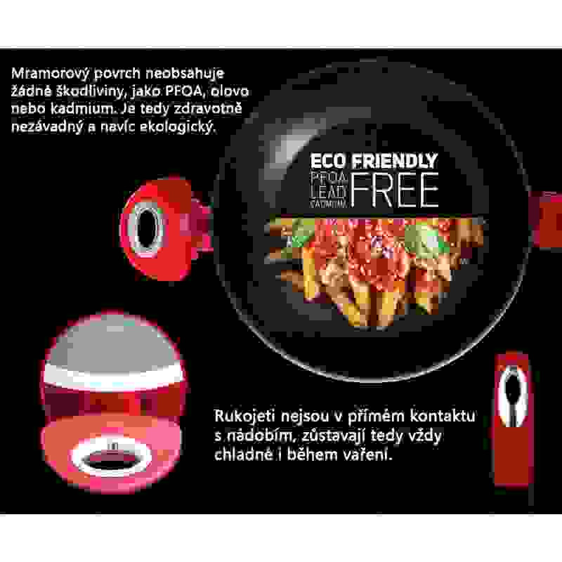 - materiál: kovaný hliník - 3-vrstvový nepriľnavý povrch s mramorovým dizajnom na varenie s minimom tuku - priemer: 26 cm - zvýšený okraj - TURBO indukčné dno - výborná tepelná vodivosť - ECOfriendly, varením ušetríte až 35% energie - vhodné na všetky druhy sporákov, aj na indukciu - vhodné do umývačky - ZADARMO podložka medzi panvice, ochráni panvice pred poškriabaním Medzi nenahraditeľné vybavenie kuchyne patria nielen poháre, hrnce a príbory, ale rozhodne aj panvice. Prípravu obľúbených pokrmov vám uľahčia a práca s nimi vám pôjde od ruky! Bez kvalitnej panvice by váš talent nebol v kuchyni plne využitý! Zaobstarajte si panvicu na vyprážanie, pečenie alebo grilovanie mäsa, zeleniny a ďalších surovín. Príprava jedla bude rýchlejšia a vy budete mať na tanieri zdravé pokrmy. Druhy kuchynských panvíc V našej ponuke panvíc nájdete rôzne druhy panvičiek pre široké možnosti využitia. S grilovacou panvicou si doma pripravíte mäso a zeleninu ako z grilu. Hlboké panvice využijete na varenie cestovín a polievok. Palacinkové panvičky sú ideálne na prípravu tenkých palaciniek, lievanečníkové panvice na prípravu lievancov a servírovacie panvice budú zdobiť slávnostnú tabuľu a udržiavať jedlo v teple. Univerzálny wok je skvelý na prípravu ázijských pokrmov. Vo woku rýchlo usmažíte mäso a zeleninu pri vysokých teplotách a jedlo bude mať vynikajúcu chuť a arómu. Vo vašej kuchyni sa bude určite vynímať panvička vo farbe červená! Máte veľkú rodinu alebo čakáte veľkú návštevu, na ktorú chcete pripraviť chutné jedlo? Potom je hlboká panvica to pravé pre vás a vašu kuchyňu! V hlbokej panvici pripravíte naraz väčšie množstvo jedla , ako sú napríklad polievky , guláš , rizoto a mnoho ďalšieho. V ponuke máme široký výber hlbokých panvíc, ktoré sú vyrobené z kvalitného materiálu , teda sú odolné av kuchyni vám budú dlho slúžiť. Hlboké panvice sú vybavené praktickou a pevnou rukoväťou, vďaka ktorej sa vám bude s panvicou dobre manipulovať, čo oceníte obzvlášť pri príprave väčšieho množstva jedla. Príprava jedla v tomto type panvy nemá žiadny predpísaný postup. Odporúčame používať kvalitné a zdravé suroviny, ktoré sú dôležité na výslednú chuť a kvalitu jedla. Hlboké panvice sú vhodné na varenie , vyprážanie aj dusenie . Pripravíte v nej rôzne druhy chutných jedál.