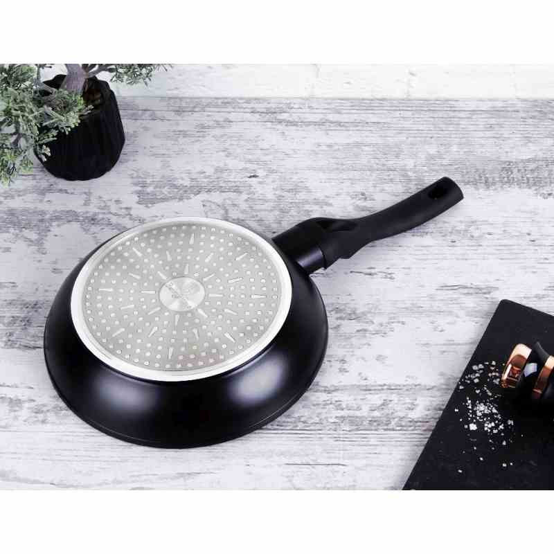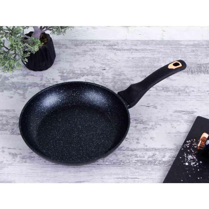 - univerzálna panvica s mramorovým povrchom a ergonomickou rukoväťou v atraktívnom dizajne - 3-vrstvový povrch s mramorovým dizajnom charakteristický svojou dokonalou nepriľnavosťou, pripravované potraviny sa nepripaľujú a vďaka tomu sa panvica veľmi jednoducho čistí - zároveň je vhodný na zdravé varenie s minimom tuku alebo oleja, v závislosti na použitých surovinách pokojne aj bez jedinej kvapky tuku - vnútorná aj vonkajšia vrstva neobsahujú žiadne škodliviny, výsledné pokrmy tak nestrácajú varením svoje vitamíny - jadro panvice z kovaného hliníka vyniká vysokou stabilitou a perfektnou tepelnou vodivosťou, takže sa nielen rýchlo a rovnomerne zahreje po celom povrchu, veľmi ľahko aj teplotu pri varení udržuje - zosilnené nerezové Turbo indukčné dno pre maximálnu efektivitu prípravy pokrmu - ergonomicky tvarovaná rukoväť má protišmykovú mäkčenú úpravu, vďaka ktorej skvele padne do ruky, dobre sa s ňou manipuluje a umožní pevný a bezpečný úchop - vďaka izolačným prvkom zostáva rukoväť po celú dobu varenia chladná a nepáli - telo panvy je zakončené zosilneným okrajom pre lepšiu odolnosť voči nárazom - vhodná na všetky druhy sporákov aj na indukciu - vhodná tiež na zapekanie v rúre do maximálnej teploty 160°C - vďaka nadštandardným nepriľnavým vlastnostiam je čistenie rýchle a nenáročné, stačí umyť teplou vodou a hubkou - možno umývať aj v umývačke riadu - ideálny pre každodenné varenie, dusenie a smaženie akýchkoľvek pokrmov - ECOfriendly, použité materiály neobsahujú žiadne škodliviny ako Pfoa, olovo ani kadmium - panvica je vďaka svojmu perfektnému vzhľadu vhodná aj na priame servírovanie pokrmov na stôl - Chránič povrchu medzi panvice ako DARČEK ZADARMO - rozmery: priemer horného okraja 20 x výška 4,2 cm - kolekcia: Black Rose Collection Medzi nenahraditeľné vybavenie kuchyne patria nielen poháre, hrnce a príbory, ale rozhodne aj panvice. Prípravu obľúbených pokrmov vám uľahčia a práca s nimi vám pôjde od ruky! Bez kvalitnej panvice by váš talent nebol v kuchyni plne využitý! Zaobstarajte si panvicu na vyprážanie, pečenie alebo grilovanie mäsa, zeleniny a ďalších surovín. Príprava jedla bude rýchlejšia a vy budete mať na tanieri zdravé pokrmy. Druhy kuchynských panvíc V našej ponuke panvíc nájdete rôzne druhy panvičiek pre široké možnosti využitia. S grilovacou panvicou si doma pripravíte mäso a zeleninu ako z grilu. Hlboké panvice využijete na varenie cestovín a polievok. Palacinkové panvičky sú ideálne na prípravu tenkých palaciniek, lievanečníkové panvice na prípravu lievancov a servírovacie panvice budú zdobiť slávnostnú tabuľu a udržiavať jedlo v teple. Univerzálny wok je skvelý na prípravu ázijských pokrmov. Vo woku rýchlo usmažíte mäso a zeleninu pri vysokých teplotách a jedlo bude mať vynikajúcu chuť a arómu. Vo vašej kuchyni sa bude určite vynímať panvička vo farbe čierna! Panvica má kvalitnú povrchovú úpravu , vďaka ktorej sa vám s ňou bude dobre pracovať a ľahko z nej odstránite nečistoty. Panvicu môžete tiež bez obáv dať umývať do umývačky.