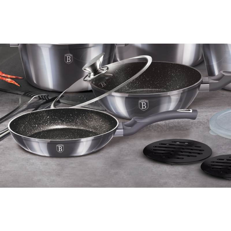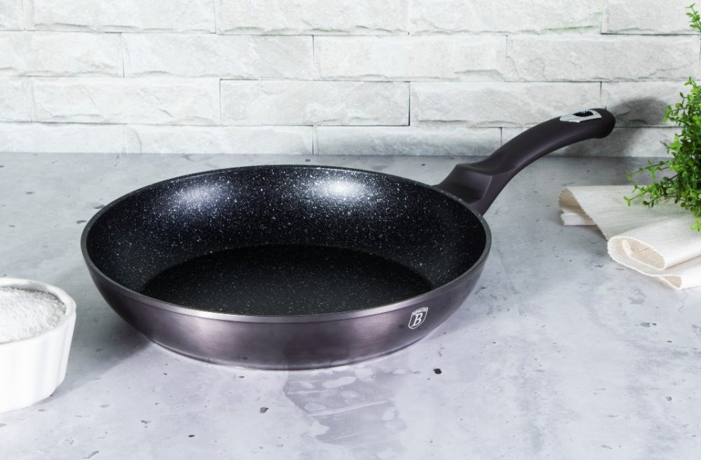 - univerzálna panvica s mramorovým povrchom a ergonomickou rukoväťou v atraktívnom dizajne - 3-vrstvový povrch s mramorovým dizajnom charakteristický svojou dokonalou nepriľnavosťou, pripravované potraviny sa nepripaľujú a vďaka tomu sa panvica veľmi jednoducho čistí - zároveň je vhodný na zdravé varenie s minimom tuku alebo oleja, v závislosti na použitých surovinách pokojne aj bez jedinej kvapky tuku - vnútorná aj vonkajšia vrstva neobsahujú žiadne škodliviny, výsledné pokrmy tak nestrácajú varením svoje vitamíny - jadro panvice z kovaného hliníka vyniká vysokou stabilitou a perfektnou tepelnou vodivosťou, takže sa nielen rýchlo a rovnomerne zahreje po celom povrchu, veľmi ľahko aj teplotu pri varení udržuje - zosilnené nerezové Turbo indukčné dno pre maximálnu efektivitu prípravy pokrmu - ergonomicky tvarovaná rukoväť má protišmykovú mäkčenú úpravu, vďaka ktorej skvele padne do ruky, dobre sa s ňou manipuluje a umožní pevný a bezpečný úchop - vďaka izolačným prvkom zostáva rukoväť po celú dobu varenia chladná a nepáli - telo panvy je zakončené zosilneným okrajom pre lepšiu odolnosť voči nárazom - vhodná na všetky druhy sporákov aj na indukciu - vhodná tiež na zapekanie v rúre do maximálnej teploty 160°C - vďaka nadštandardným nepriľnavým vlastnostiam je čistenie rýchle a nenáročné, stačí umyť teplou vodou a hubkou - možno umývať aj v umývačke riadu - ideálny pre každodenné varenie, dusenie a smaženie akýchkoľvek pokrmov - ECOfriendly, použité materiály neobsahujú žiadne škodliviny ako Pfoa, olovo ani kadmium - vysoko atraktívny moderný dizajn v metalických farbách - panvica je vďaka svojmu perfektnému vzhľadu vhodná aj na priame servírovanie pokrmov na stôl - Chránič povrchu medzi panvice ako DARČEK ZADARMO - rozmery: priemer horného okraja 20 x výška 4,5 cm - objem: 1 liter - indukcia: áno - sklokeramika: áno - elektrina: áno - plyn: áno - rúra: 160°C - umývačka: áno - kolekcia: Carbon PRO Line Medzi nenahraditeľné vybavenie kuchyne patria nielen poháre, hrnce a príbory, ale rozhodne aj panvice. Prípravu obľúbených pokrmov vám uľahčia a práca s nimi vám pôjde od ruky! Bez kvalitnej panvice by váš talent nebol v kuchyni plne využitý! Zaobstarajte si panvicu na vyprážanie, pečenie alebo grilovanie mäsa, zeleniny a ďalších surovín. Príprava jedla bude rýchlejšia a vy budete mať na tanieri zdravé pokrmy. Druhy kuchynských panvíc V našej ponuke panvíc nájdete rôzne druhy panvičiek pre široké možnosti využitia. S grilovacou panvicou si doma pripravíte mäso a zeleninu ako z grilu. Hlboké panvice využijete na varenie cestovín a polievok. Palacinkové panvičky sú ideálne na prípravu tenkých palaciniek, lievanečníkové panvice na prípravu lievancov a servírovacie panvice budú zdobiť slávnostnú tabuľu a udržiavať jedlo v teple. Univerzálny wok je skvelý na prípravu ázijských pokrmov. Vo woku rýchlo usmažíte mäso a zeleninu pri vysokých teplotách a jedlo bude mať vynikajúcu chuť a arómu. Vo vašej kuchyni sa bude určite vynímať panvička vo farbe čierna!